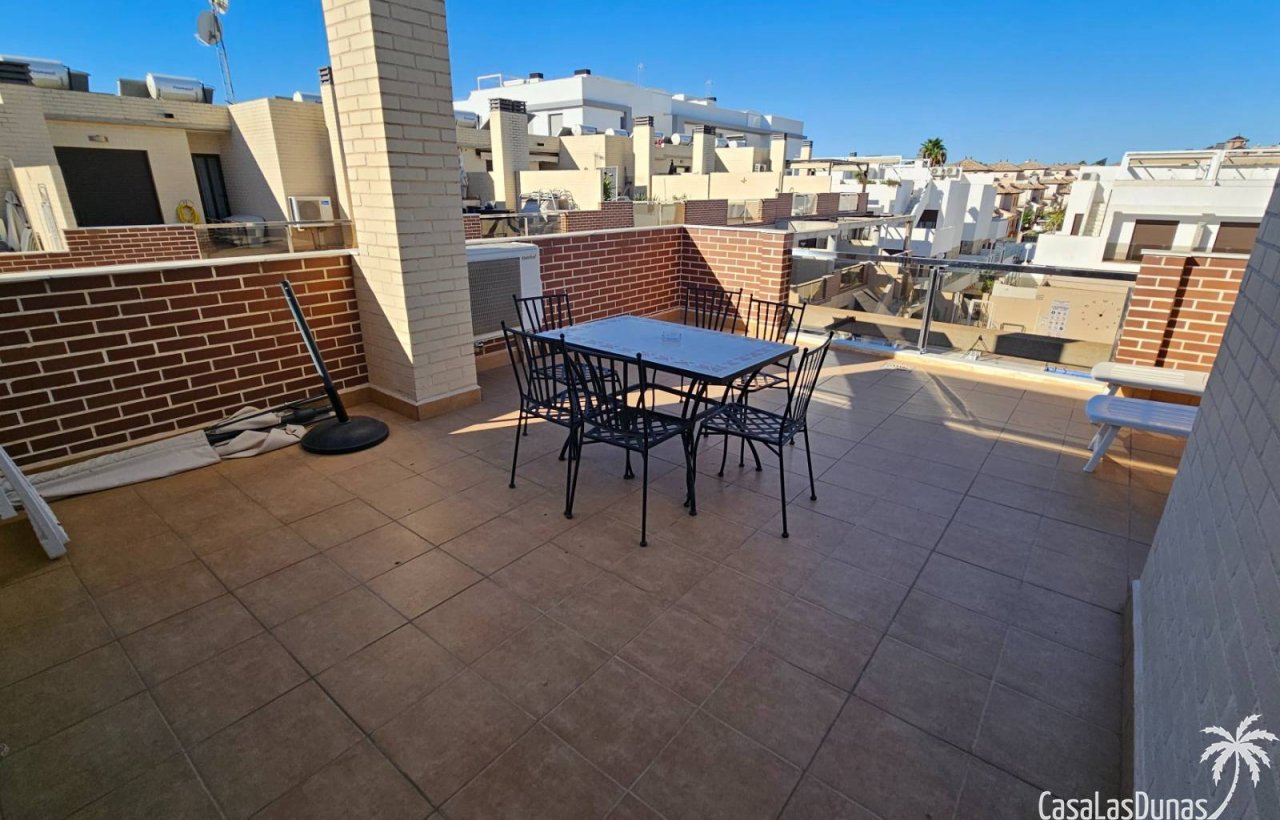 Entdecken Sie diese ideal gelegene Dachgeschosswohnung mit privater Dachterrasse in Lomas de Cabo Roig, nur wenige Schritte von Geschäften, Bars, Res