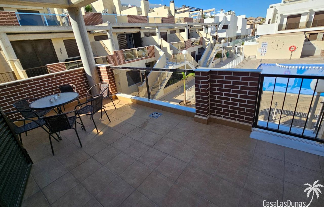 Entdecken Sie diese ideal gelegene Dachgeschosswohnung mit privater Dachterrasse in Lomas de Cabo Roig, nur wenige Schritte von Geschäften, Bars, Res