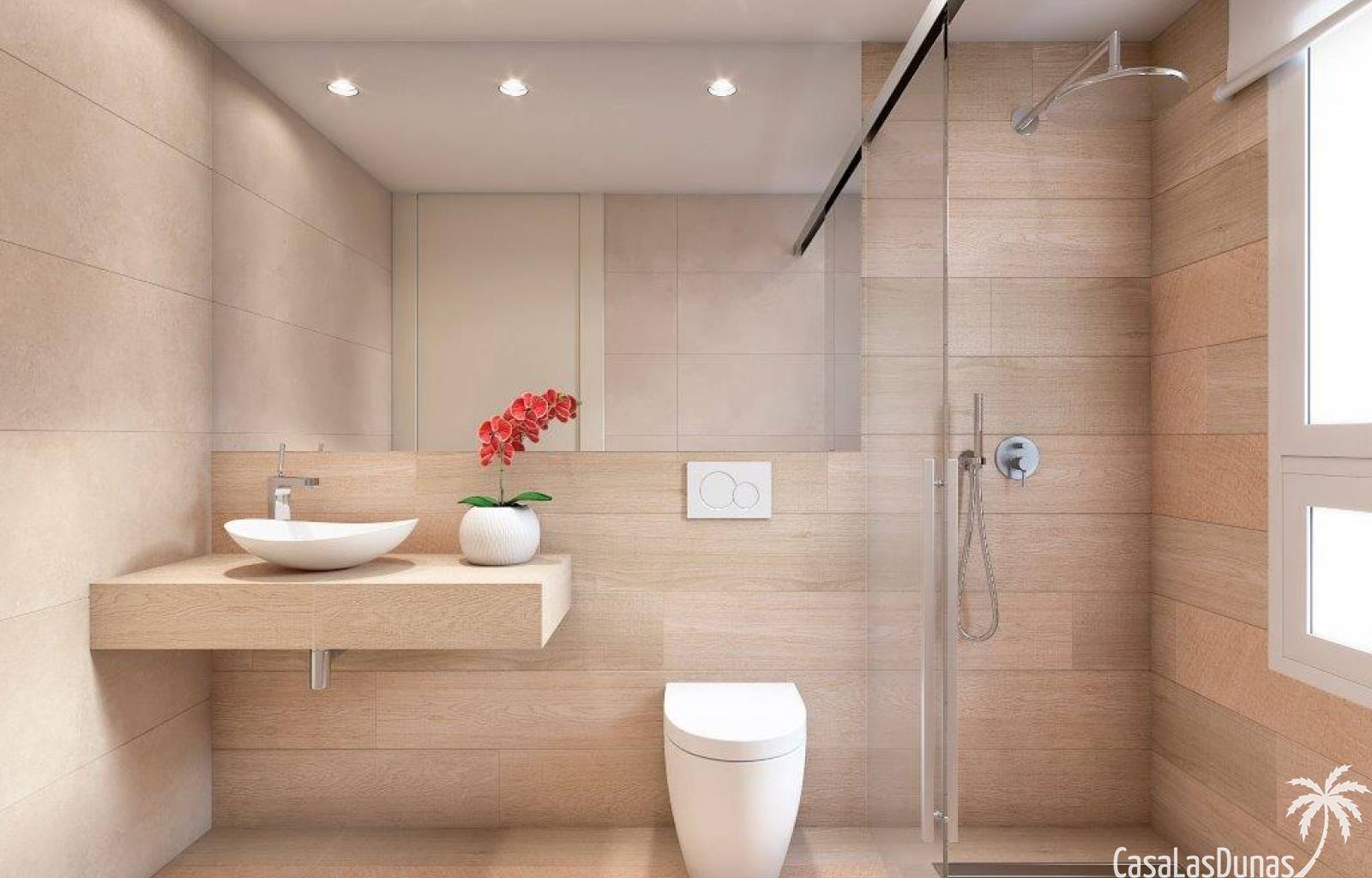 Sie können zwischen einer Wohnung im Erdgeschoss mit Garten oder einem Penthouse mit Dachterrasse wählen, und jede Wohnung verfügt über eine sichere Tiefgarage mit Abstellraum und Aufzug, Klimaanlage warm/kalt und voll ausgestattete Badezimmer mit Duschwänden.