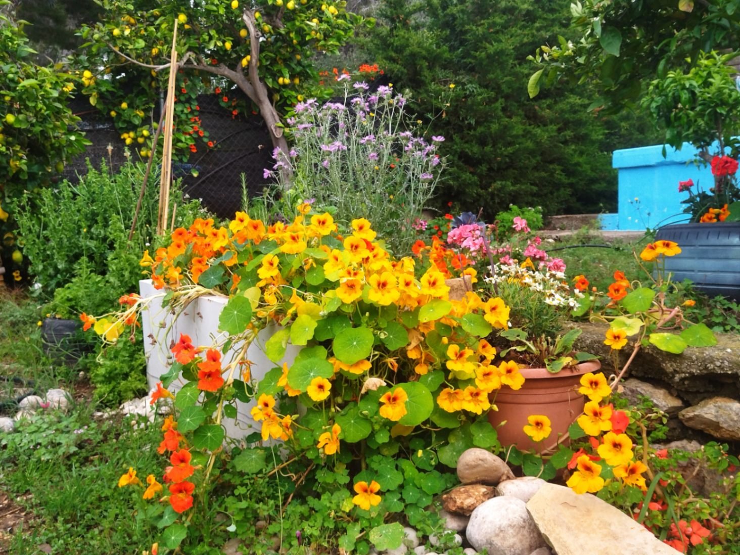 Auf dem 790 m² großen Grundstück finden Sie auch einen Swimmingpool (16 m²), eine Außendusche, einen Grillplatz und einen Picknickbereich. Der essbare und aromatische Garten ist außergewöhnlich, mit Obstbäumen (Oliven-, Trauben-, Birnen-, Japanische Mispel-, Orange-, Zitrone-, Schwarzkirsch-, Apfel-, Grapefruitbäumen), Kräutern und Heilpflanzen (Rosmarin, Lavendel, Thymian, Salbei, Zitronenverbene, Aloe Vera, Jasmin) sowie einem Gemüsebeet mit Grünkohl, Mangold, Spinat, Sellerie, Schnittlauch, Radieschen und wildem Spargel. Umgeben von Jacarandabäumen, Bougainvilleas, Palmen und Schattenbäumen wird er mit einem großen Regenwasserbehälter, der an ein Bewässerungssystem angeschlossen ist, in voller Blüte gehalten.