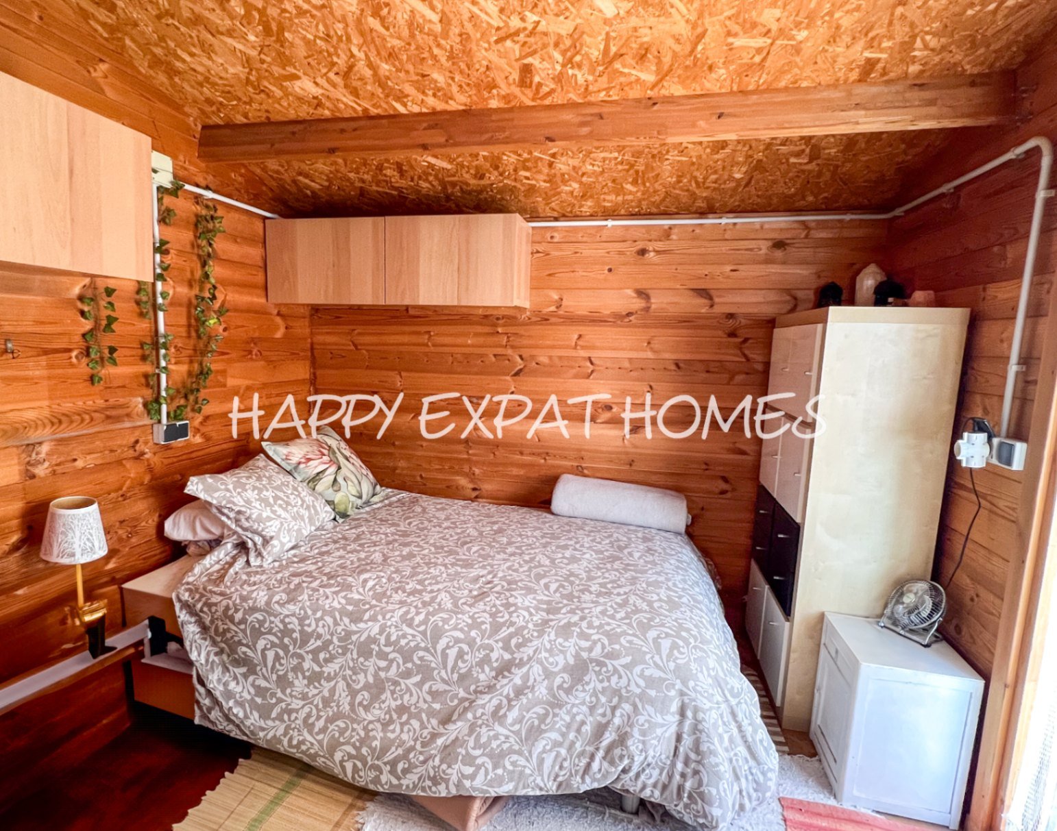 Das Hauptgebäude hat ca. 30 m² und bietet all den Charme eines kompakten Zuhauses mit Kamin, einem Schlafzimmer und einem Badezimmer.