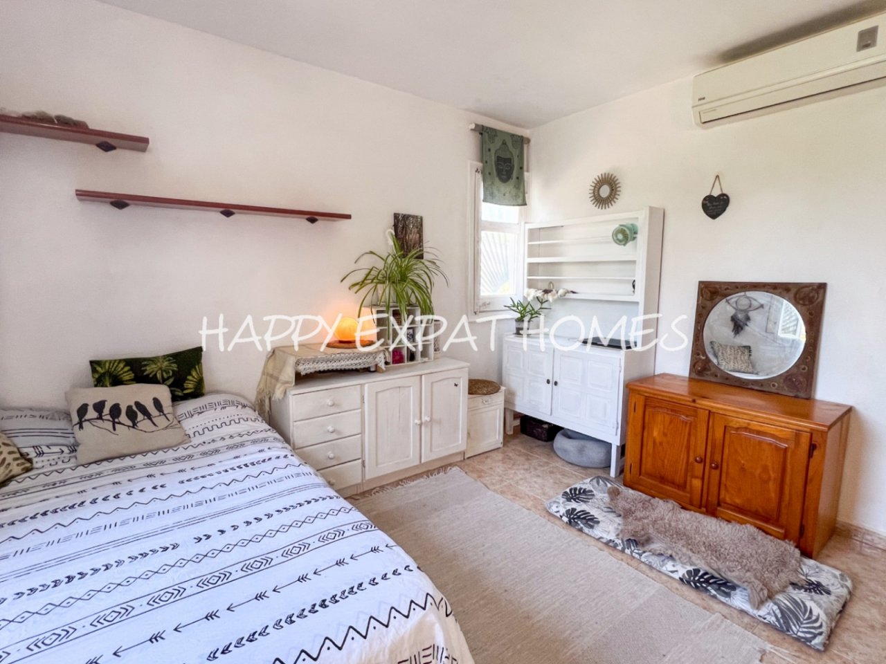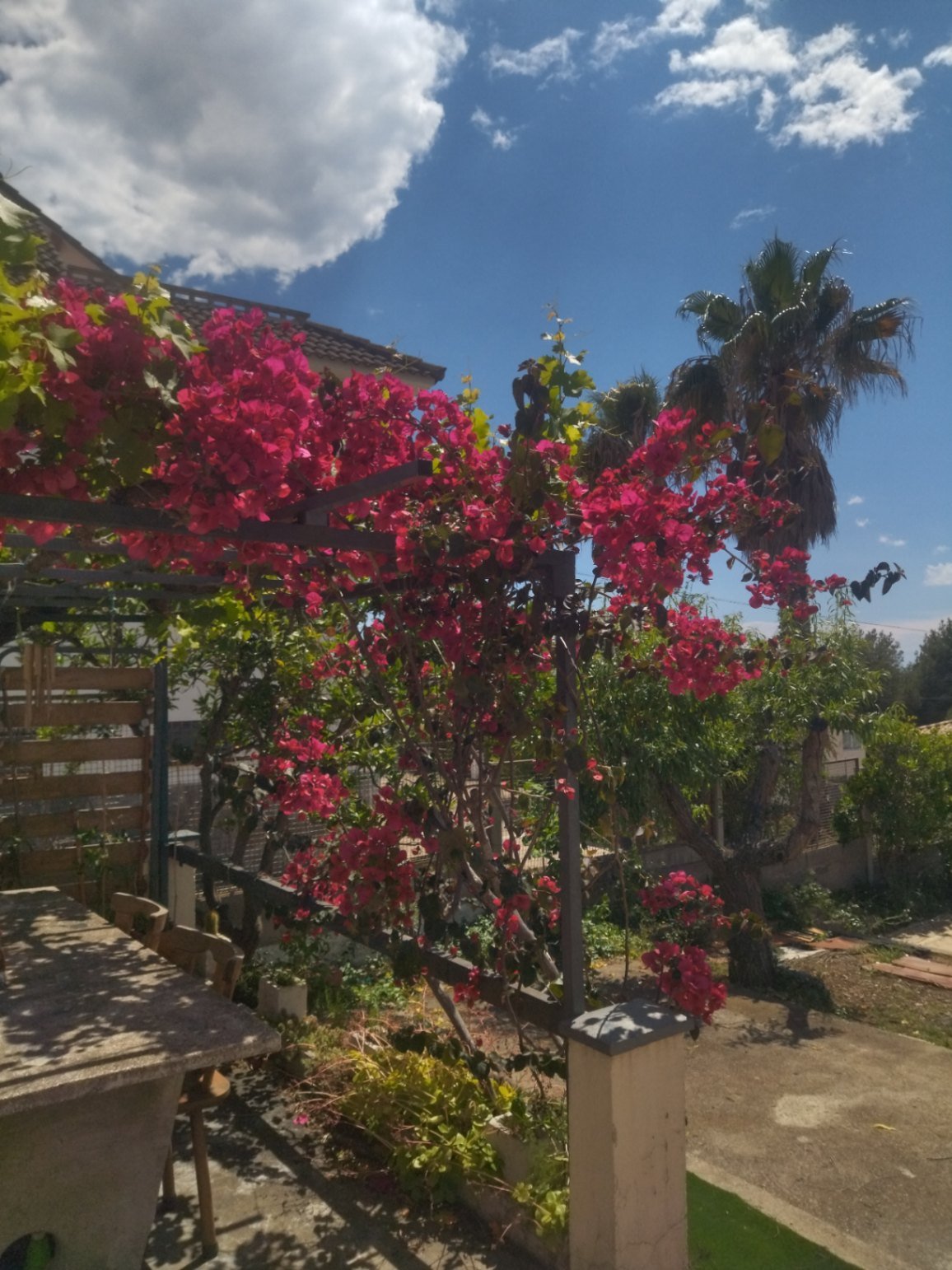Auf dem 790 m² großen Grundstück finden Sie auch einen Swimmingpool (16 m²), eine Außendusche, einen Grillplatz und einen Picknickbereich. Der essbare und aromatische Garten ist außergewöhnlich, mit Obstbäumen (Oliven-, Trauben-, Birnen-, Japanische Mispel-, Orange-, Zitrone-, Schwarzkirsch-, Apfel-, Grapefruitbäumen), Kräutern und Heilpflanzen (Rosmarin, Lavendel, Thymian, Salbei, Zitronenverbene, Aloe Vera, Jasmin) sowie einem Gemüsebeet mit Grünkohl, Mangold, Spinat, Sellerie, Schnittlauch, Radieschen und wildem Spargel. Umgeben von Jacarandabäumen, Bougainvilleas, Palmen und Schattenbäumen wird er mit einem großen Regenwasserbehälter, der an ein Bewässerungssystem angeschlossen ist, in voller Blüte gehalten.