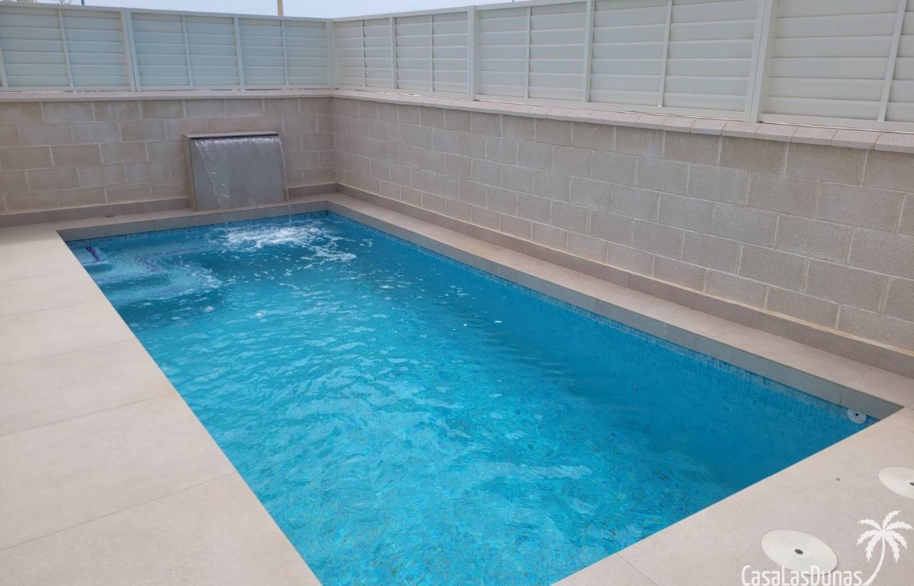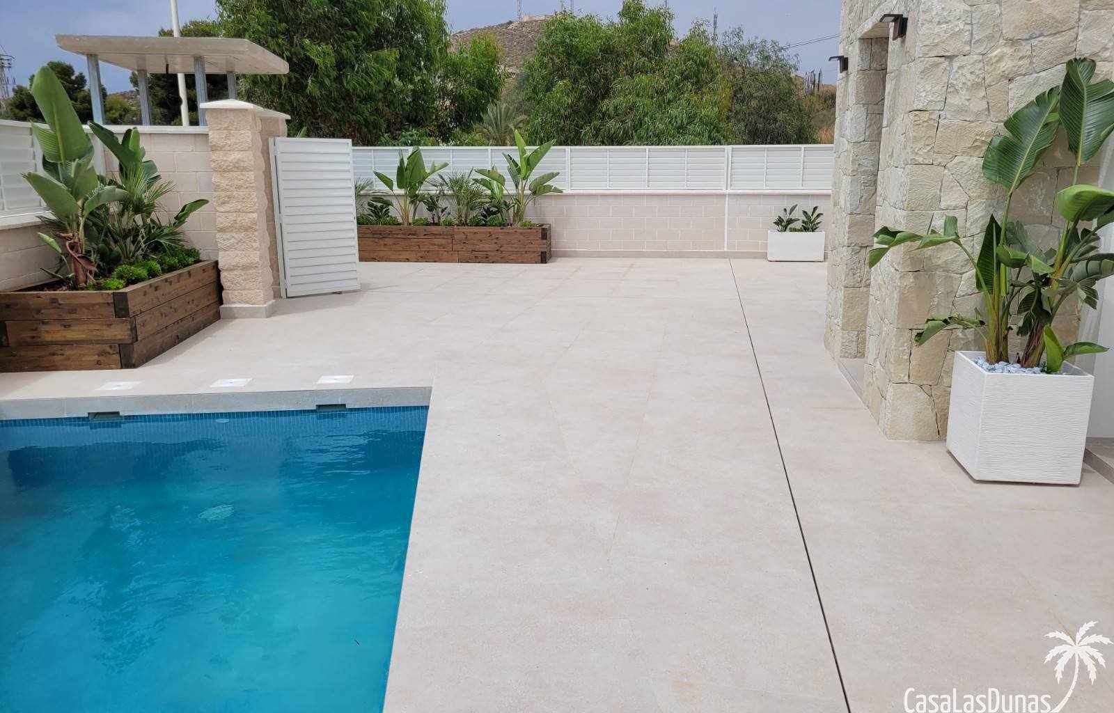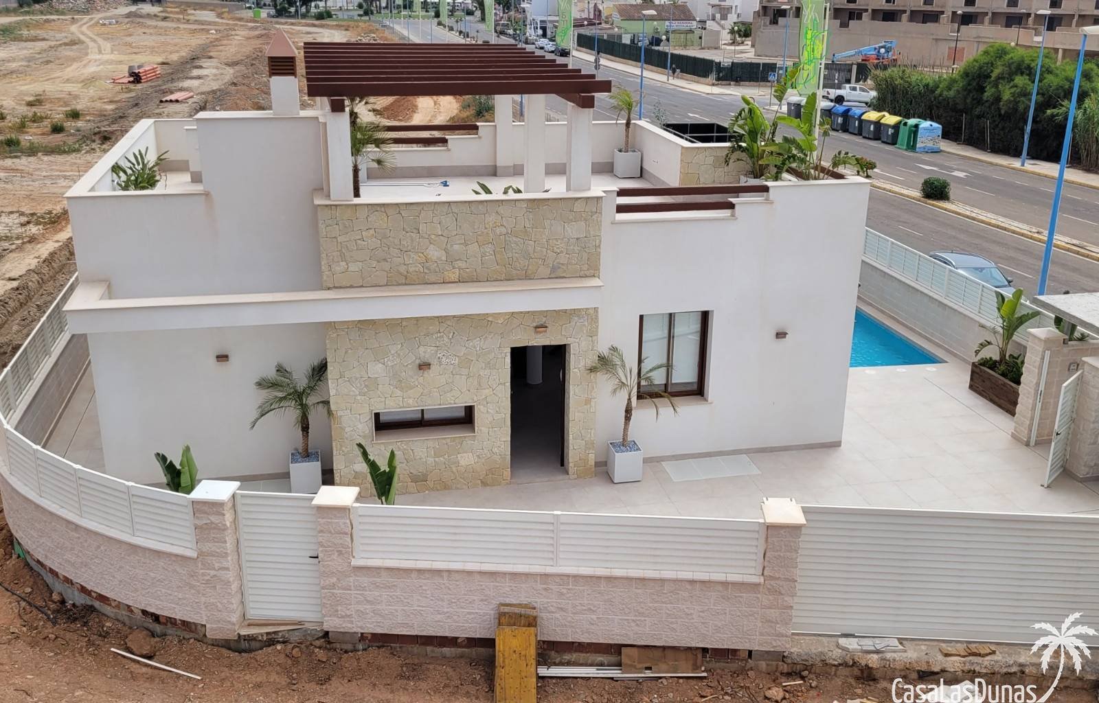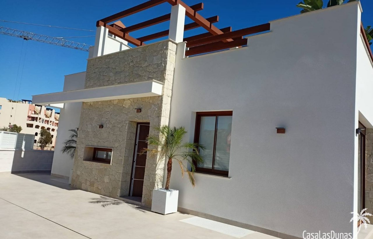 Sie werden überrascht sein, die Qualität der Innenräume dieses Hauses mit 3 Schlafzimmern und 2 Bädern zu entdecken, das auf einem großen Grundstück gebaut wurde. Verpassen Sie nicht die moderne Einbauküche mit Silestone-Arbeitsplatten und LED-Beleuchtung, das offene Wohn-Esszimmer mit doppelt hoher Glastür und die von magischem Tageslicht durchfluteten Räume. Wenn Sie mehr Innenraum wünschen, können Sie statt 3 auch 2 Schlafzimmer wählen. Ein Besuch ist auf jeden Fall ein Muss. Für weitere Informationen zu den Villen und einen Termin kontaktieren Sie uns bitte unverbindlich!