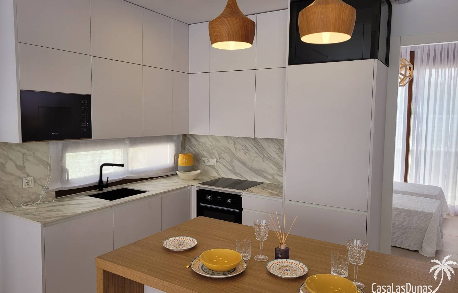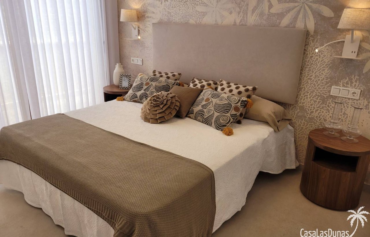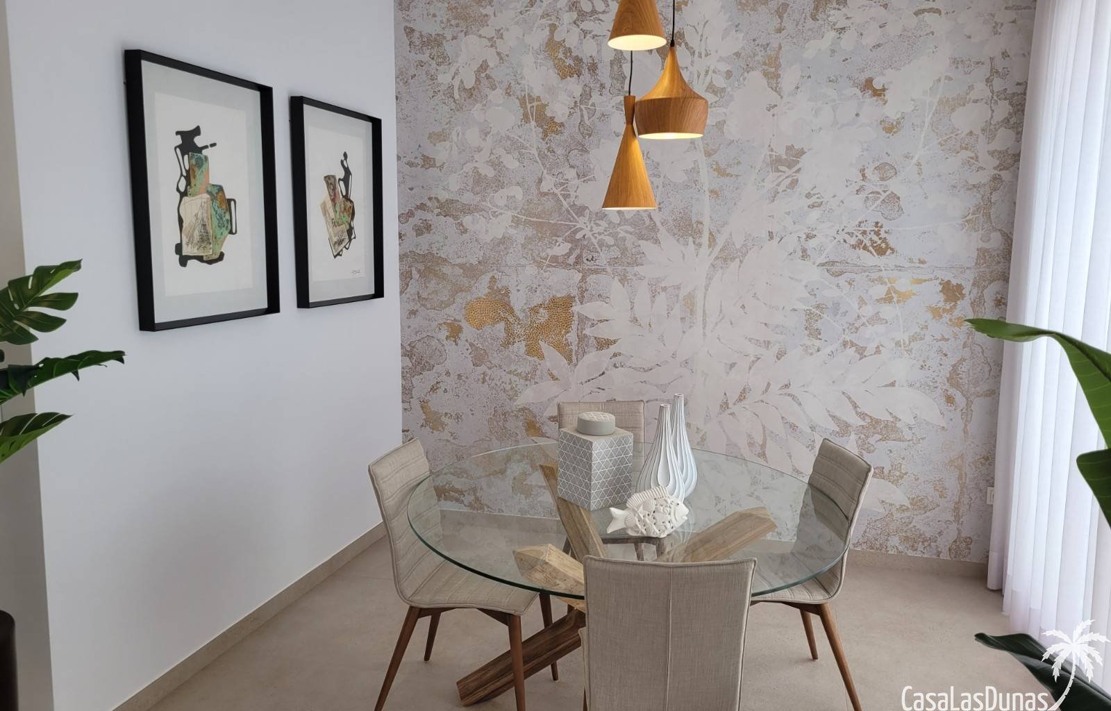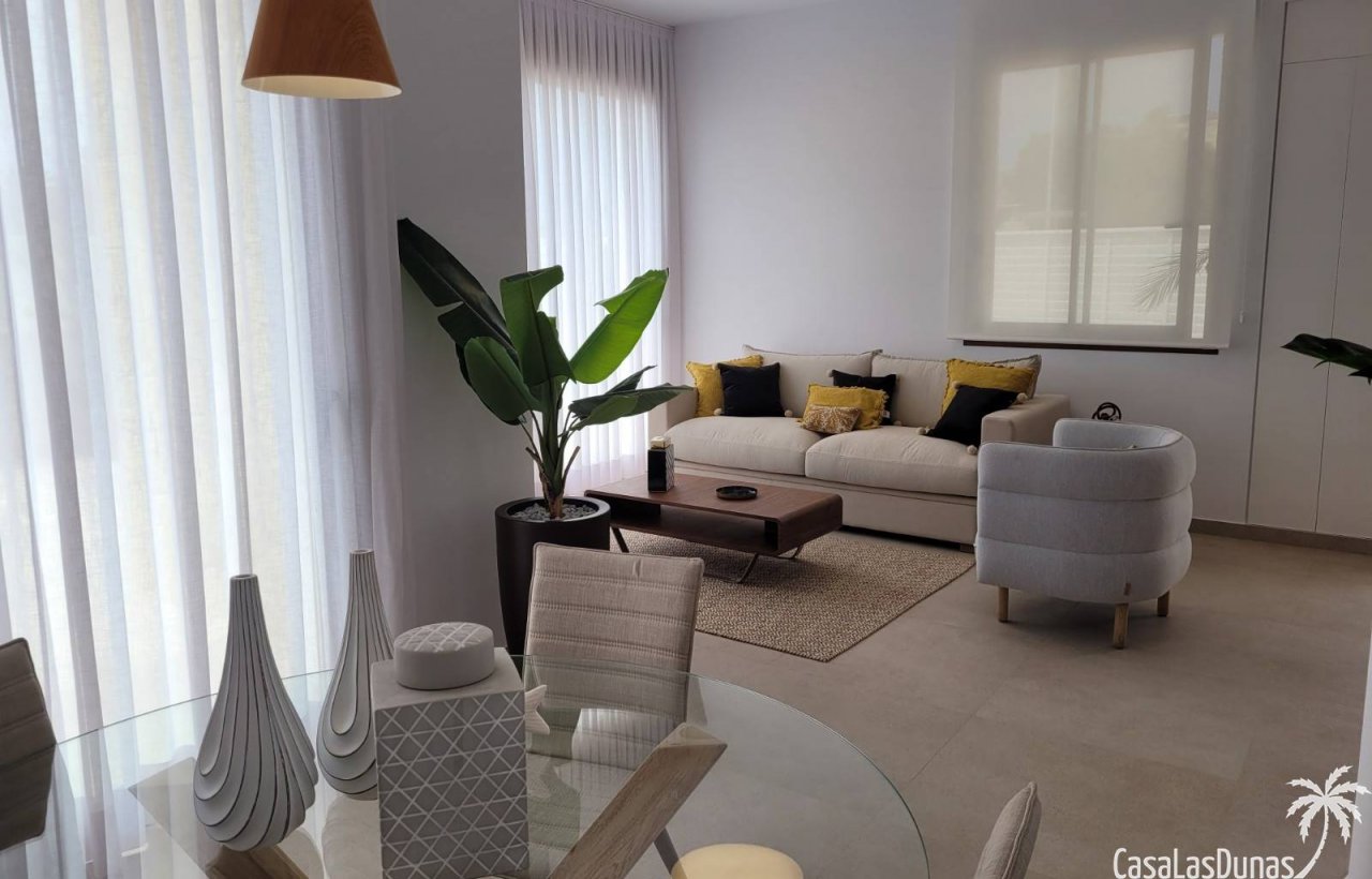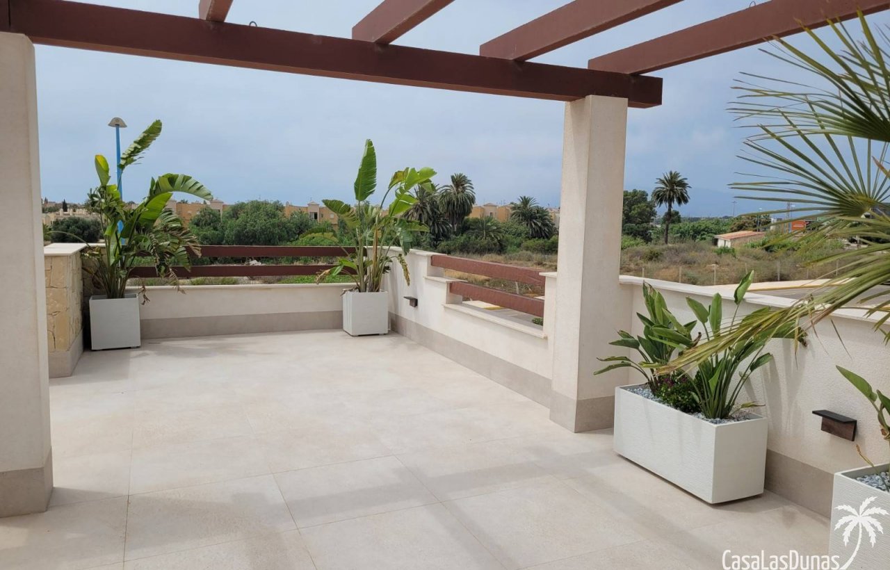 Sie werden überrascht sein, die Qualität der Innenräume dieses Hauses mit 3 Schlafzimmern und 2 Bädern zu entdecken, das auf einem großen Grundstück gebaut wurde. Verpassen Sie nicht die moderne Einbauküche mit Silestone-Arbeitsplatten und LED-Beleuchtung, das offene Wohn-Esszimmer mit doppelt hoher Glastür und die von magischem Tageslicht durchfluteten Räume. Wenn Sie mehr Innenraum wünschen, können Sie statt 3 auch 2 Schlafzimmer wählen. Ein Besuch ist auf jeden Fall ein Muss. Für weitere Informationen zu den Villen und einen Termin kontaktieren Sie uns bitte unverbindlich!
