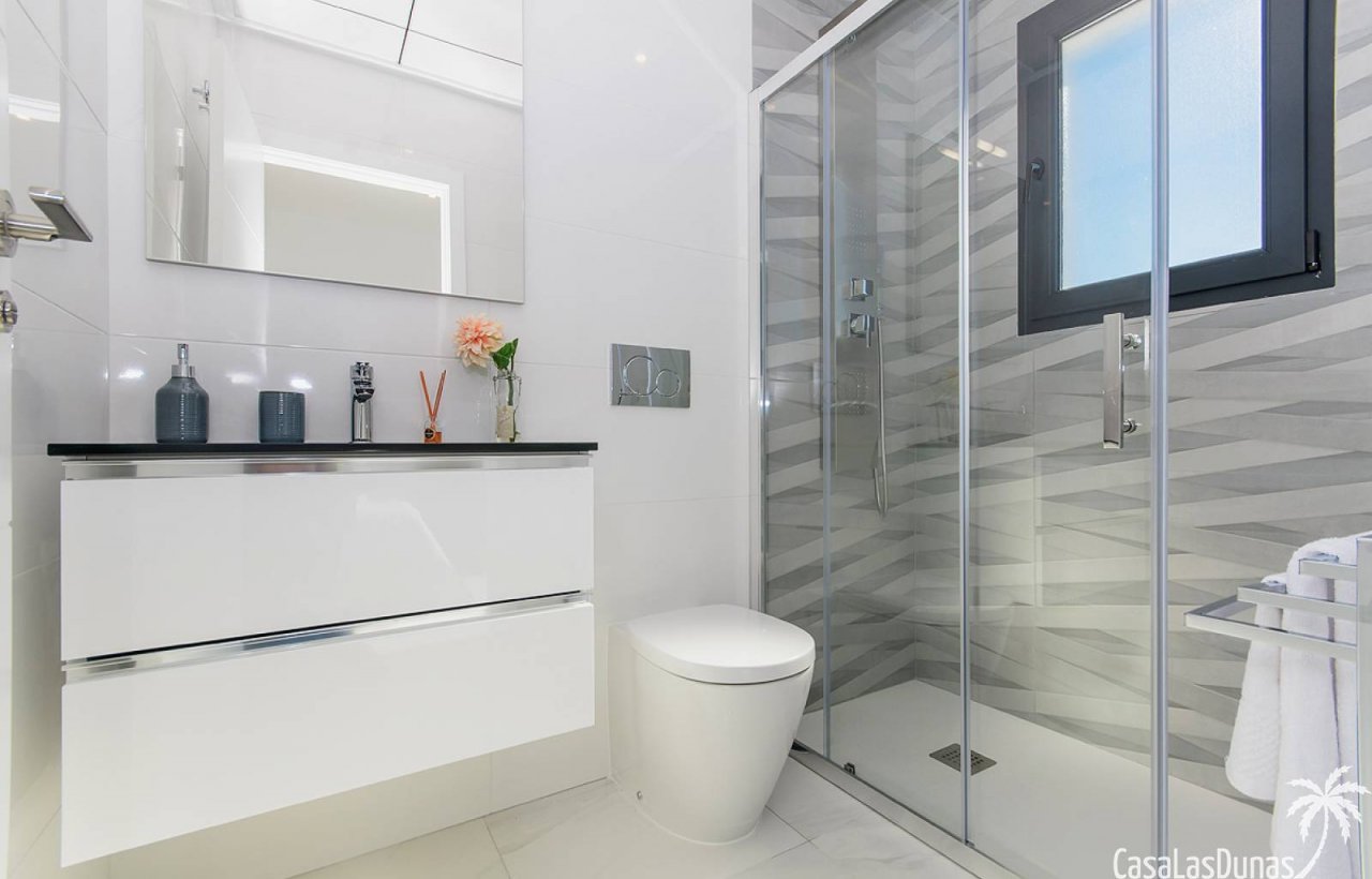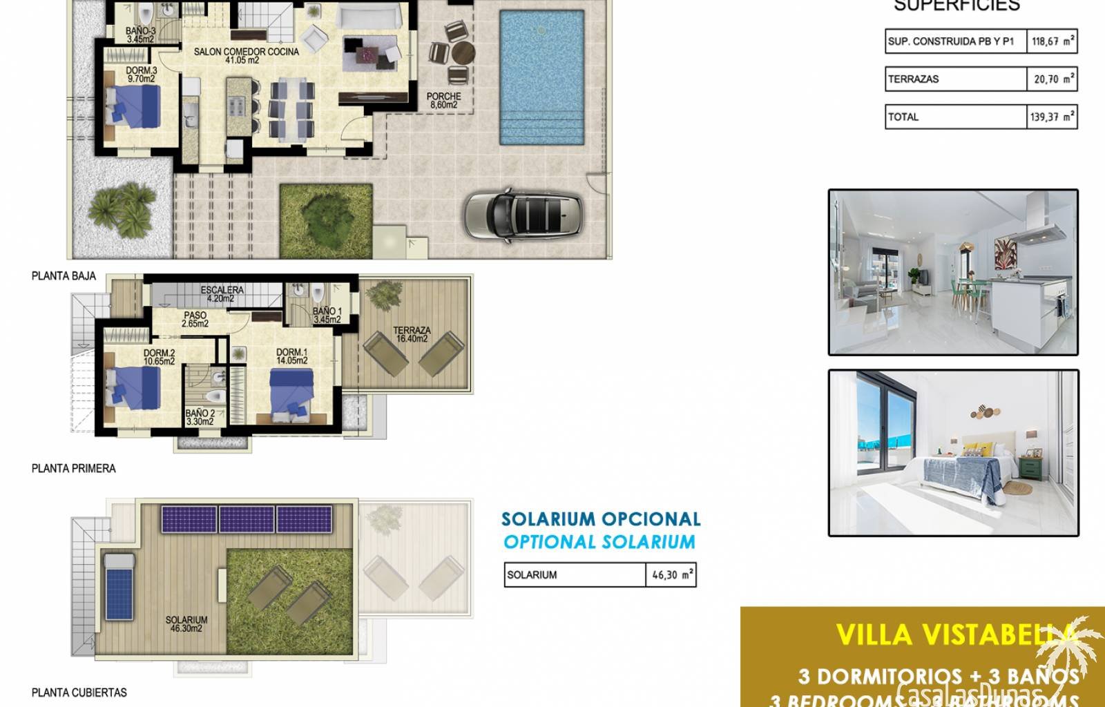 Diese wunderschönen Villen befinden sich in der schönen und ruhigen Wohngegend Entrenaranjos, neben dem Vistabella Golf Resort. Mit allen notwendigen Dienstleistungen nur wenige Meter entfernt in der Nachbarschaft: Supermarkt, Bars, Restaurants. Diese individuellen Villen bieten ein hervorragendes Preis-Leistungs-Verhältnis, alle mit privatem Grundstück mit Parkplatz und privatem Pool von 5 x 3 m oder 6 x 3 m. Das Erdgeschoss besteht aus einem großen Wohn-/Esszimmer und einer offenen Küche, 1 Schlafzimmer mit Einbauschrank, 1 komplettem Badezimmer und einer überdachten Terrasse. Die erste Etage ist in 2 Schlafzimmer mit Einbauschränken, 2 En-Suite-Badezimmern und einer großen Terrasse aufgeteilt. Das Solarium ist optional. Alle Häuser verfügen über automatische Rollläden, Fußbodenheizung in allen Badezimmern, Vorinstallation einer Kanalklimaanlage, Hydromassagesäule im Hauptbadezimmer und Zertifizierung der Energieeffizienzklasse A.