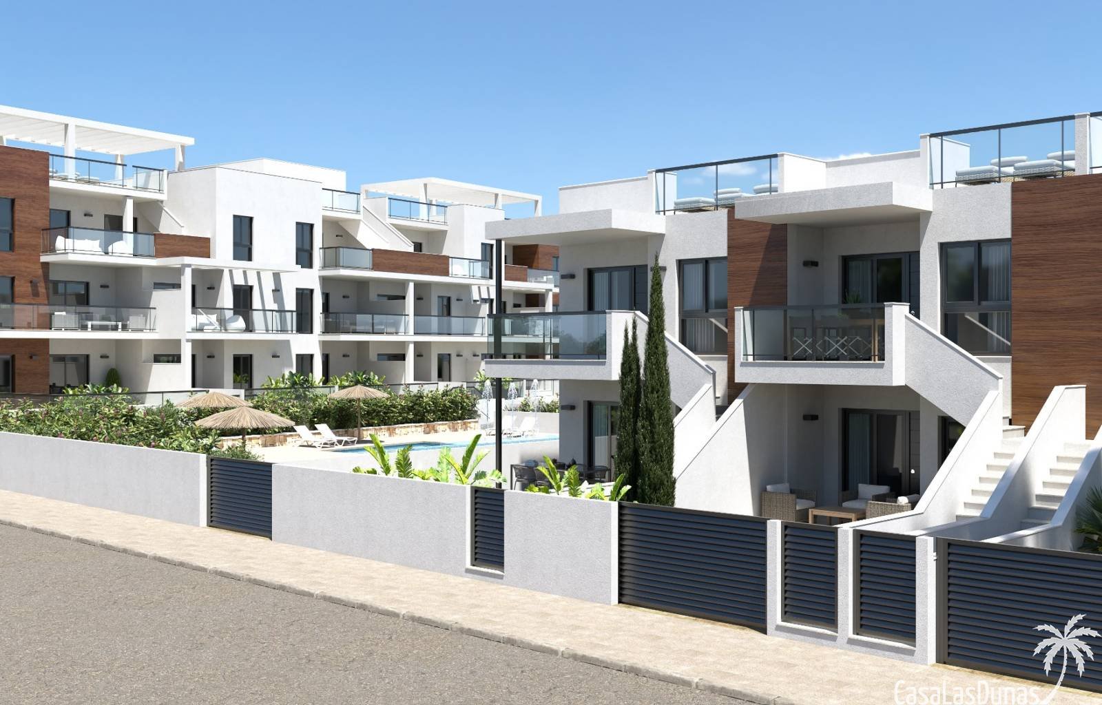Sie sind mit einem sehr eleganten Geschmack gestaltet. Alle Eigenschaften haben große Terrassen und ein Solarium. Wohnanlage in einer wunderschönen Gegend der Gegend mit erstklassigen Qualitäten, weitläufigen Gärten, Spielplatz, Gemeinschaftspool für Erwachsene und Kinder.