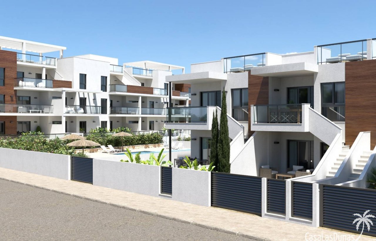 Dieser prächtige Komplex liegt nur 50 Meter von einem der schönsten Strände des Mittelmeers, dem Strand Las Higuericas, in Torre de la Horadada entfernt.