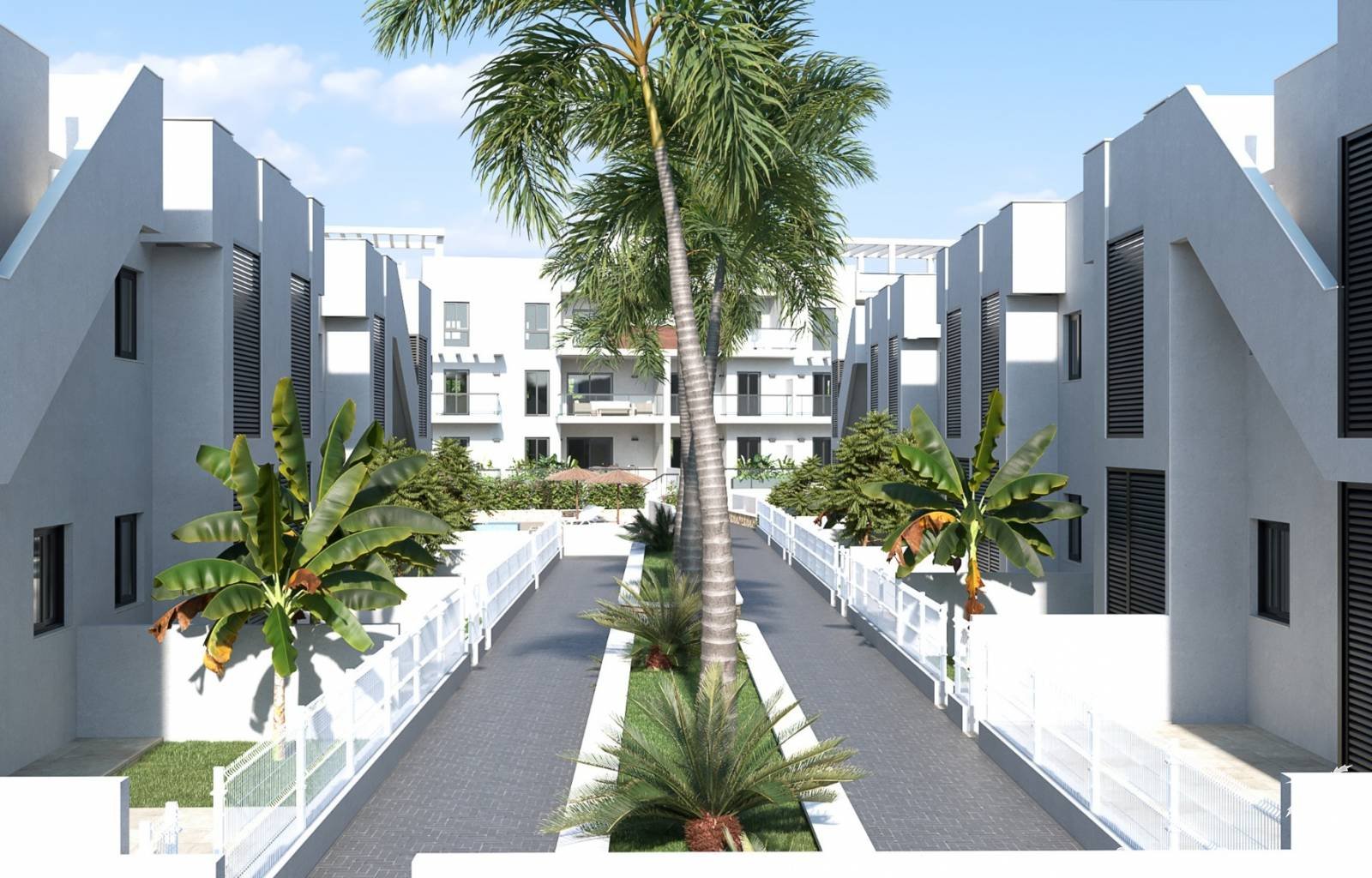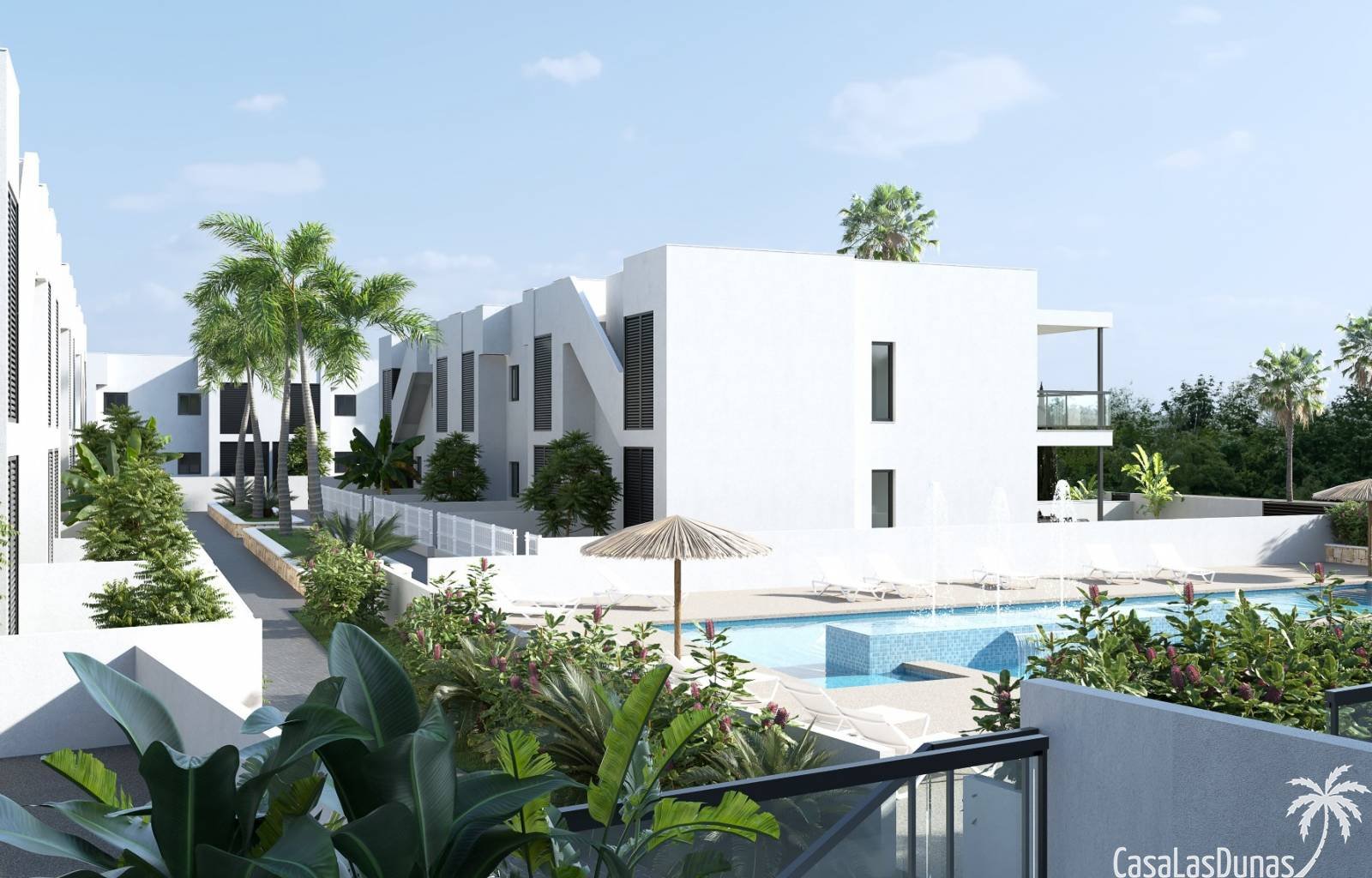 Die erste Bauphase besteht aus 27 Häusern mit 2 und 3 Schlafzimmern und einem Gemeinschaftspool und großen Gärten.