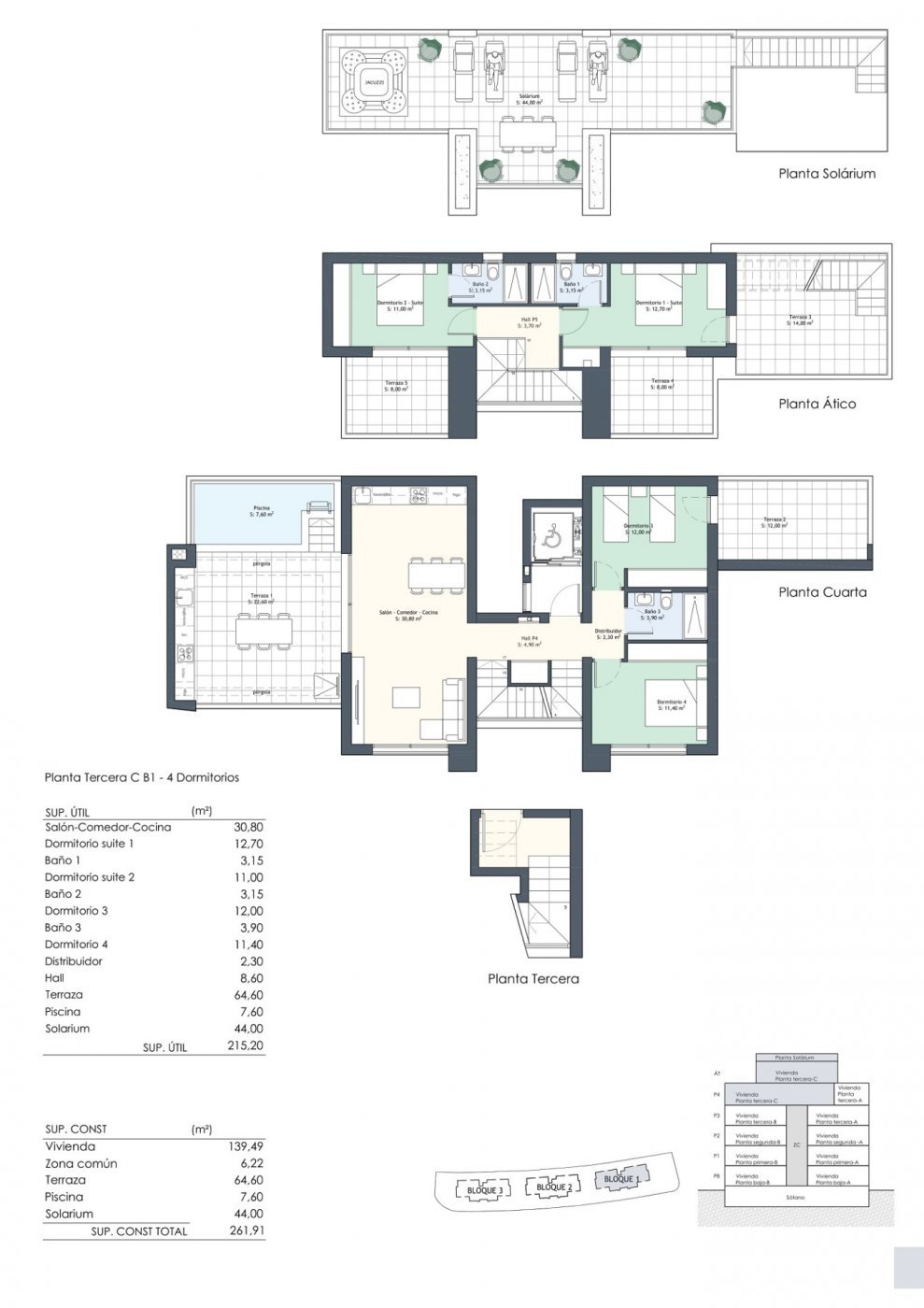 Dieses 145m2 große Apartment besteht aus 4 Schlafzimmern, 3 Bädern, einem offenen Wohnbereich mit integrierter Küche, einer großzügigen 64m2 großen Terrasse, einer 44m2 großen Dachterrasse und einem privaten Pool. Es besteht die Möglichkeit, einen Parkplatz und einen Abstellraum gegen einen Aufpreis zu nutzen. Das Gebäude ist so konzipiert, dass es einen schönen Blick auf das Mittelmeer bietet und das Klima und das natürliche Licht optimal ausnutzt.…
