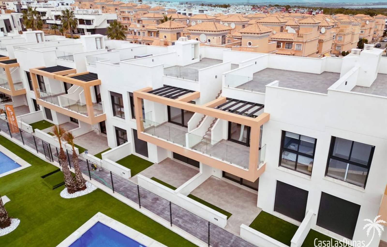 In guter Lage, nur wenige Kilometer von den Sandstränden des Mittelmeers entfernt, entsteht dieses neue Projekt. Im Projekt stehen 2 Haustypen zur Verfügung, Wohnungen im Erdgeschoss mit viel Platz im Freien (mindestens 50 m²) und Wohnungen im ersten Stock mit einer großzügigen Dachterrasse von mindestens 60 m². In der Mitte aller Wohnungen wird der schöne, gemeinschaftliche Swimmingpool gebaut. In der Nähe finden Sie Golfplätze, Einkaufszentren und viele andere Einrichtungen. Kontaktieren Sie uns für weitere Informationen!