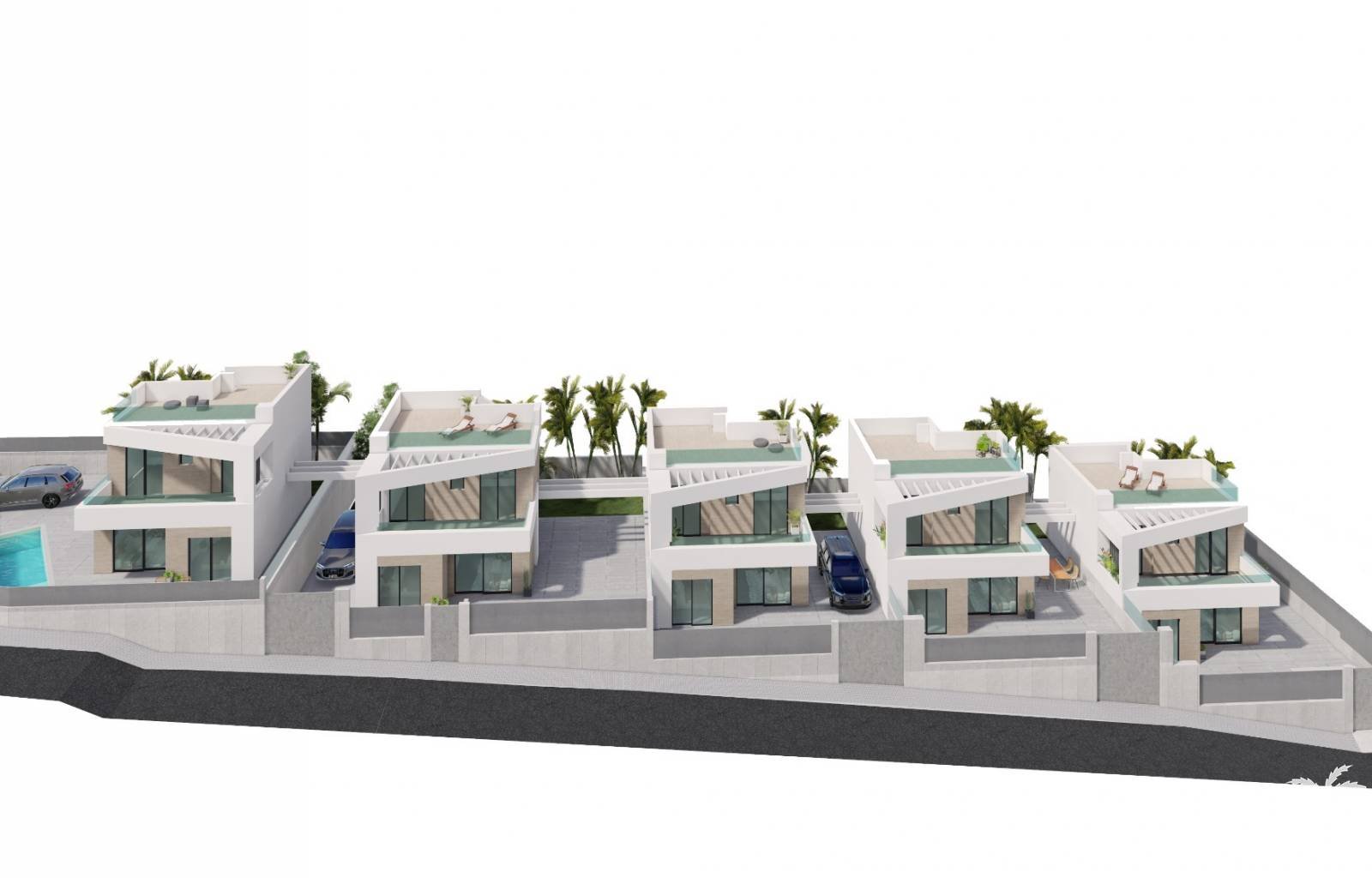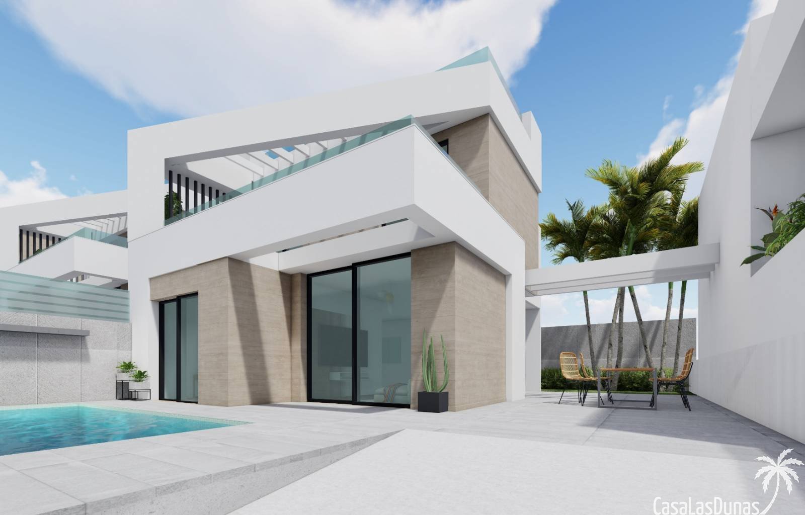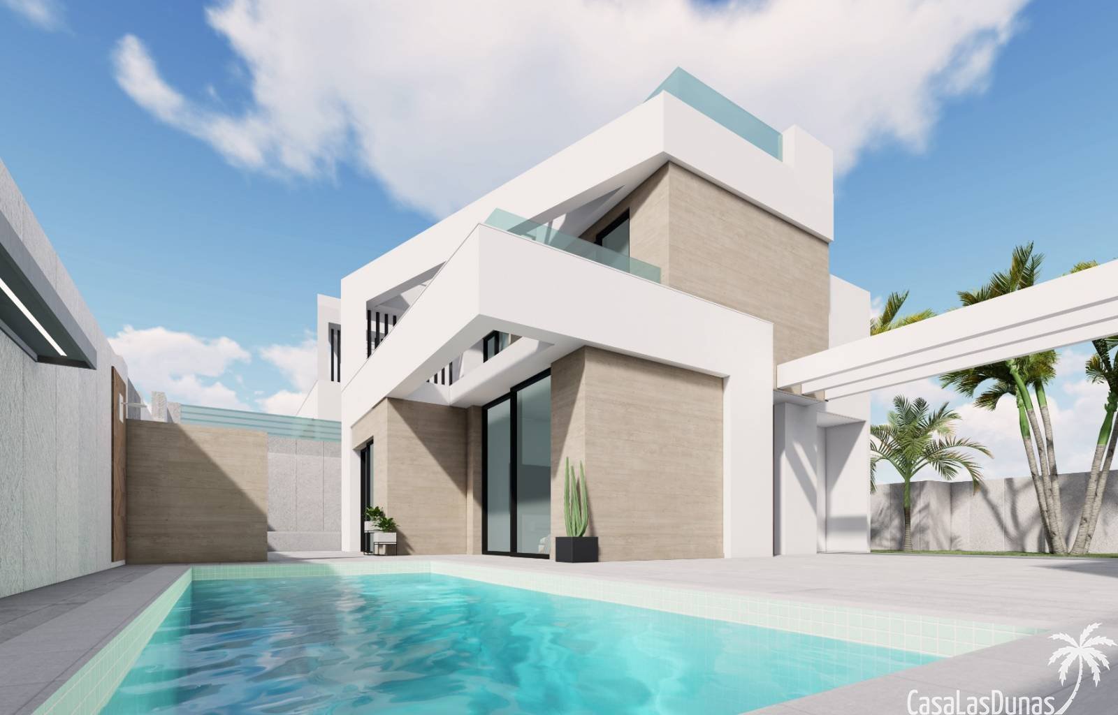 Von der ersten Etage führt eine Außentreppe zur Dachterrasse (36 m²). Alle Häuser sind mit einem 2,5 x 6 Meter großen Swimmingpool mit Wärmepumpenaufbereitung ausgestattet. Alle 3 Badezimmer verfügen über Fußbodenheizung und auf beiden Etagen sind vollklimatisierte Geräte installiert. Die Bauzeit dieser Villen beträgt ca. 12 bis 14 Monate nach Unterzeichnung des Kaufvertrages. Bitte kontaktieren Sie uns für weitere Informationen.
