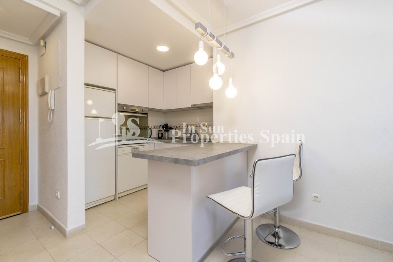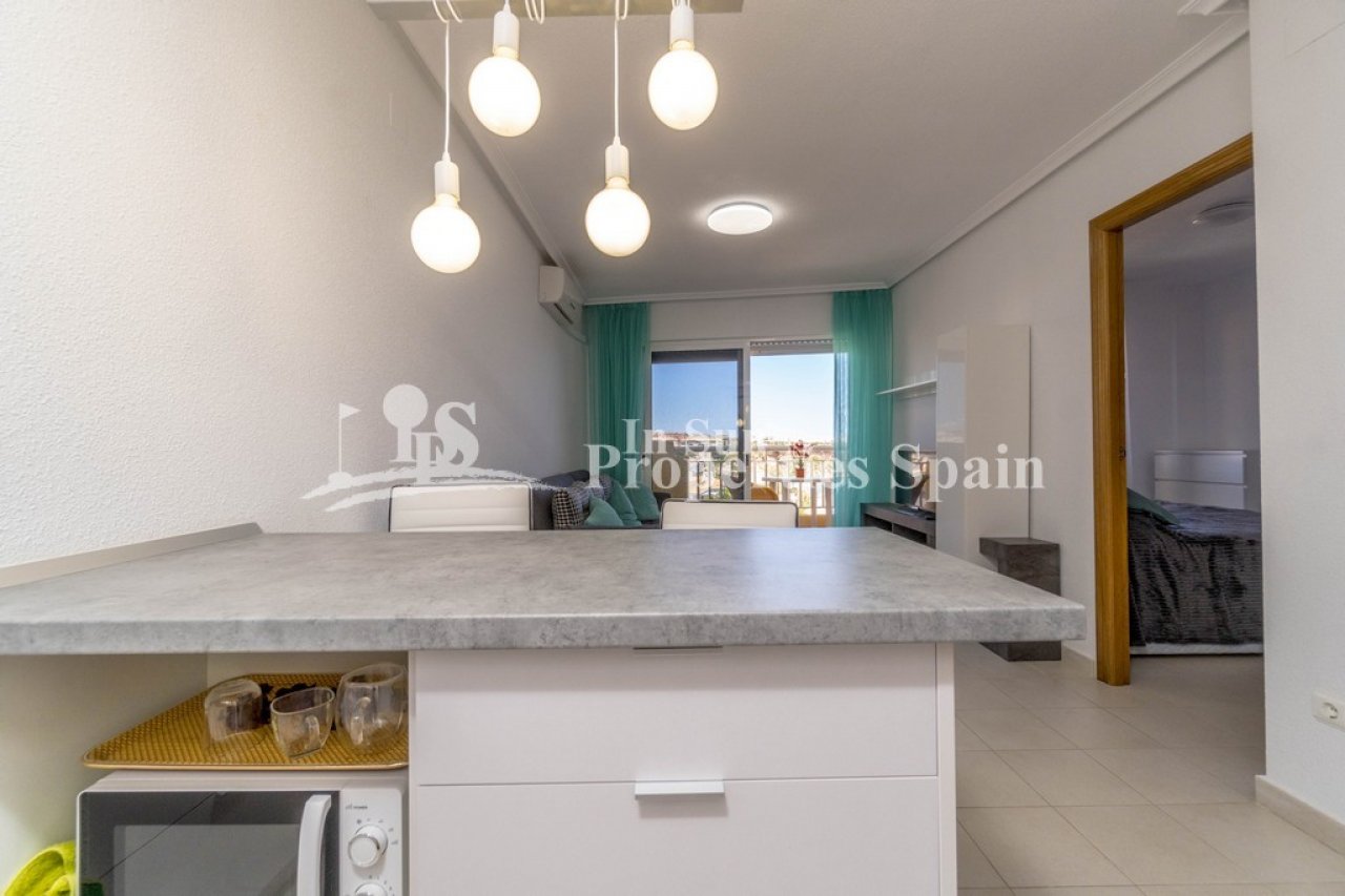 Apartment mit spektakulärem Meerblick in erster Linie von Dehesa de Campoamor. Dritter Stock, nach Nordosten ausgerichtet. Kürzlich renoviert, die Wohnung von 44m2 hat ein geräumiges Schlafzimmer, Bad, offene Küche, Wohn-Esszimmer und eine große Terrasse von 6 m2 mit Panoramablick auf das Meer. Klimaanlage im Wohnzimmer. Die Wohnanlage befindet sich direkt oberhalb des Strandes von Aguamarina und Campoamor, mit Bereichen zum Entspannen, Gemeinschaftspool und privaten direkten Zugang zum Strand. Zur Wohnung gehört ein Parkplatz, der im Preis inbegriffen ist! In der wunderschönen Gegend von Campoamor haben wir alle Annehmlichkeiten in der Nähe, Bars, Restaurants, Supermärkte, Apotheke, ZENIA BOULEVARD Einkaufszentrum, spektakuläre Strände und mehrere preisgekrönte Golfplätze. 40 Minuten von den Flughäfen Murcia/Corvera und Alicante/El Altet entfernt.