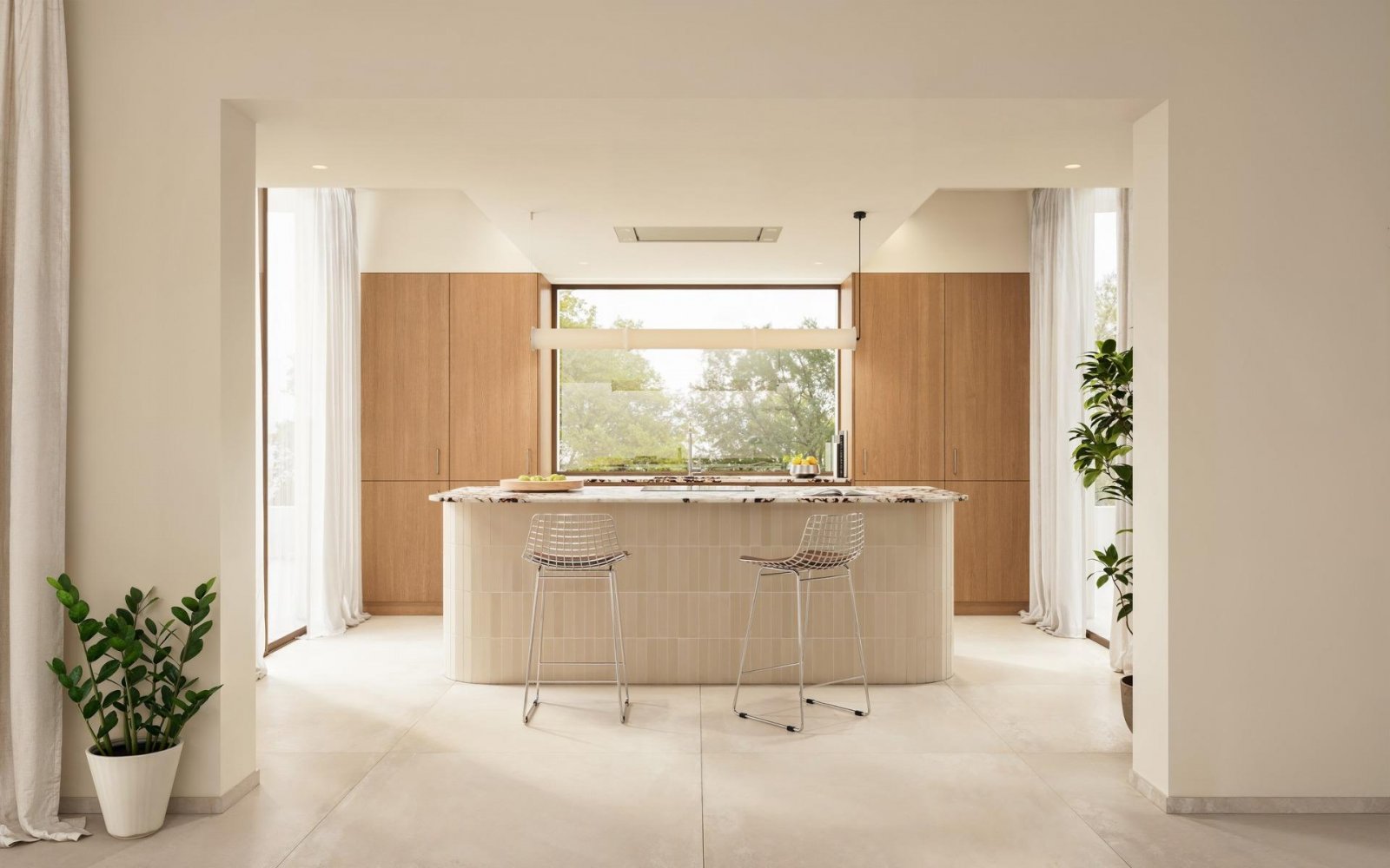 Große Fenster lassen viel Tageslicht herein und schaffen eine nahtlose Verbindung zwischen Innen- und Außenbereich, ideal, um das ganze Jahr über das milde mediterrane Klima zu genießen.