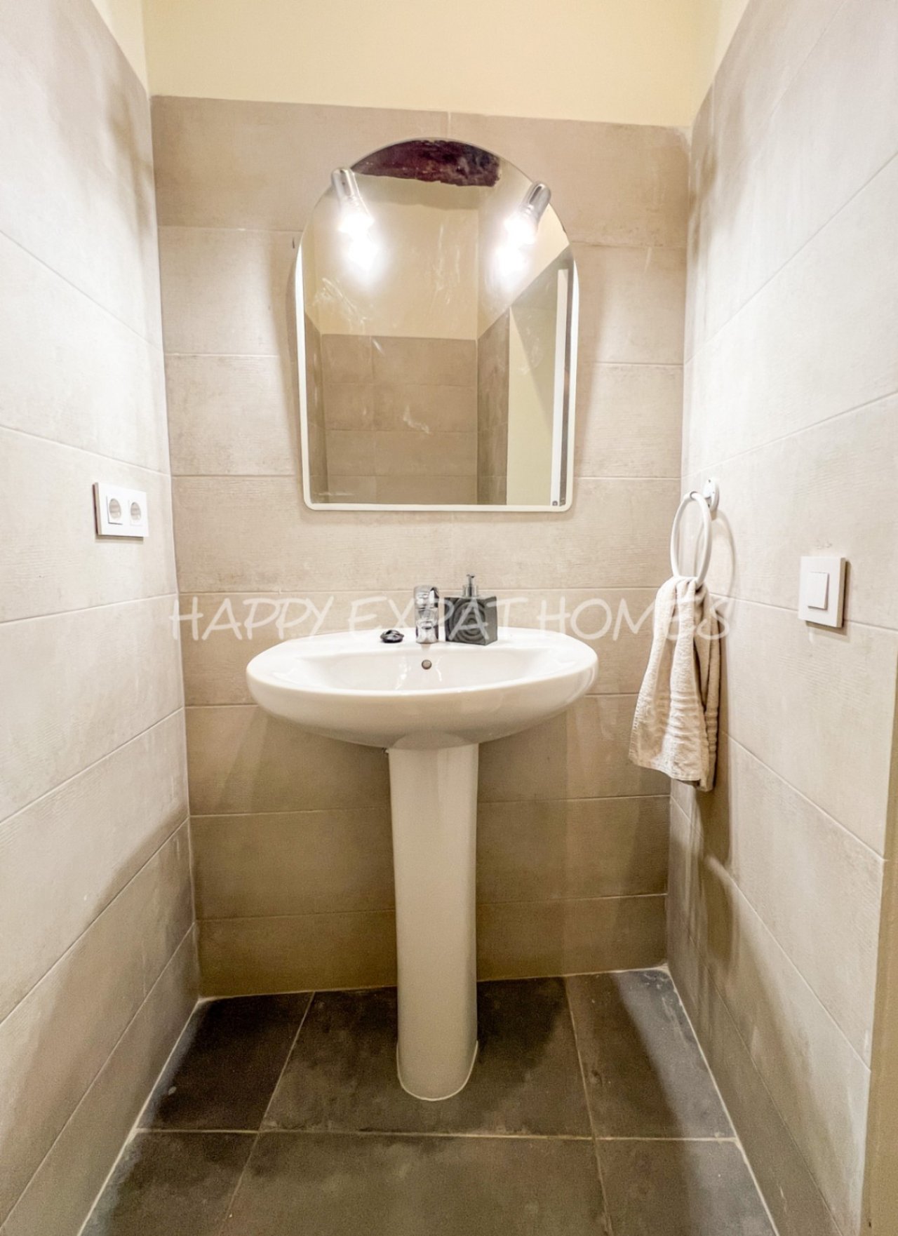 Es umfasst zwei geräumige Doppelzimmer, ein voll ausgestattetes Badezimmer und eine zusätzliche Gästetoilette. Die offene Küche bringt Licht und Funktionalität in das Haus. Sie kann separat vom Rest des Grundstücks vermietet werden.