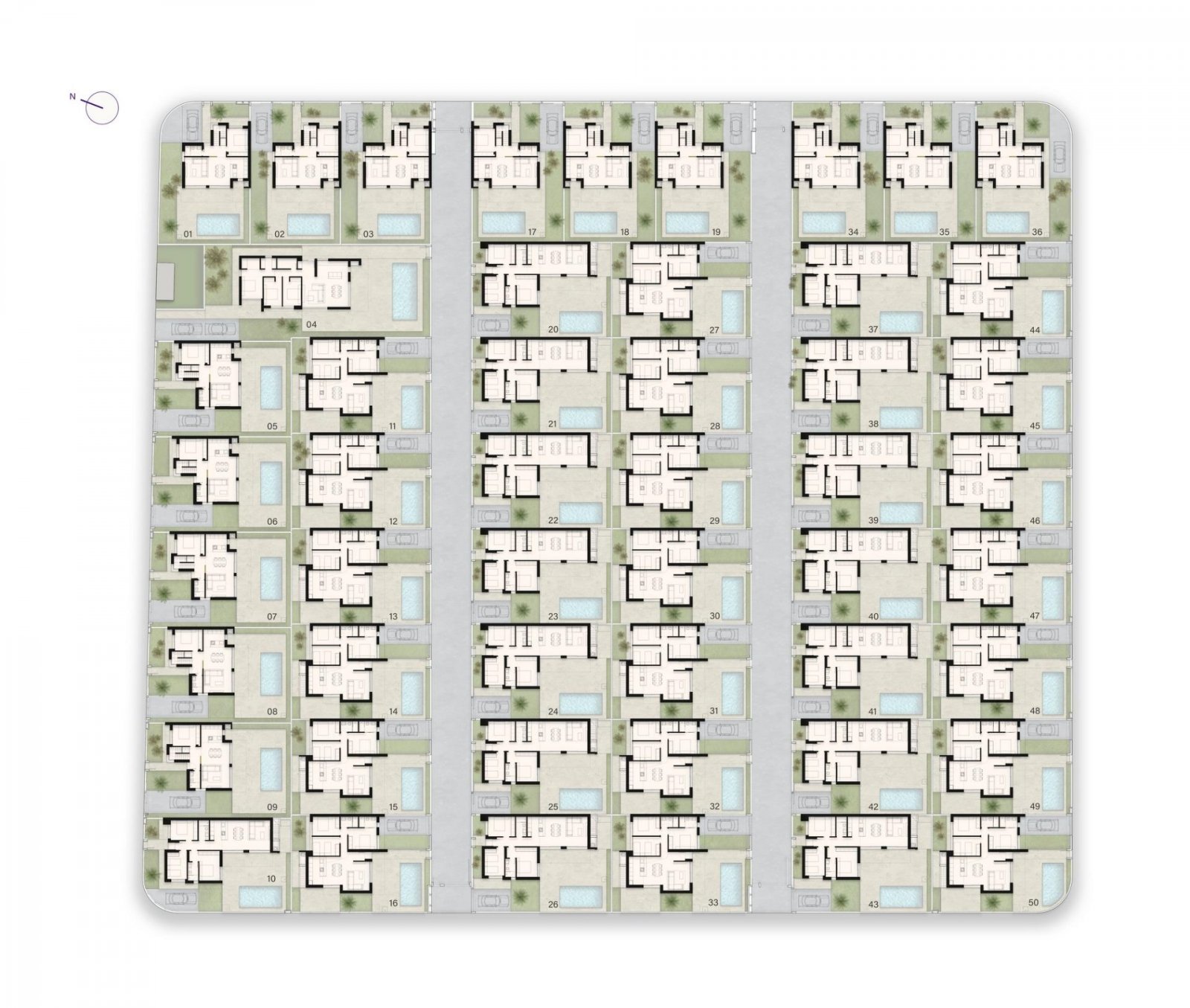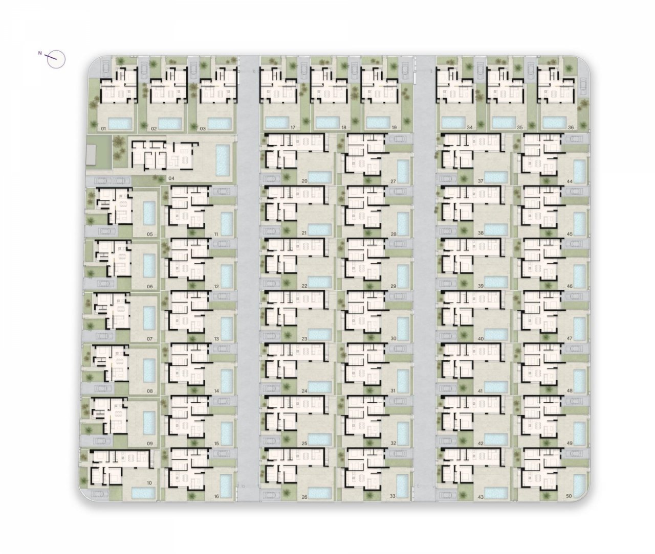 Villen: Unabhängige Immobilien mit drei Schlafzimmern und 2/3 Badezimmern, die in ein- oder zweistöckigen Grundrissen erhältlich sind. Jede Villa verfügt über einen privaten Pool, eine Sonnenterrasse und einen Parkplatz auf dem Grundstück. Optional sind auch Keller verfügbar.