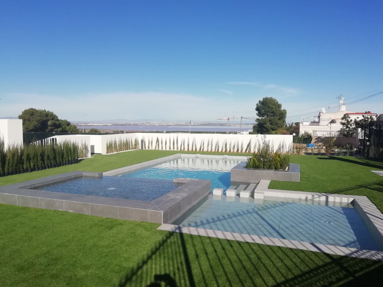 Die Außenbereiche dieser Wohnanlage sind so gestaltet, dass sie das mediterrane Klima optimal nutzen. Die Bungalows verfügen über private Terrassen, die sich perfekt zum Entspannen im Freien eignen. Darüber hinaus können die Bewohner ein Solarium genießen, das ideal zum Sonnenbaden in privater Umgebung ist. Die gemeinschaftlichen Gartenbereiche bieten einen grünen Raum zum Spazierengehen oder Ausruhen, während der Gemeinschaftspool und der Jacuzzi perfekt sind, um sich an heißen Sommertagen zu erfrischen und zu entspannen.