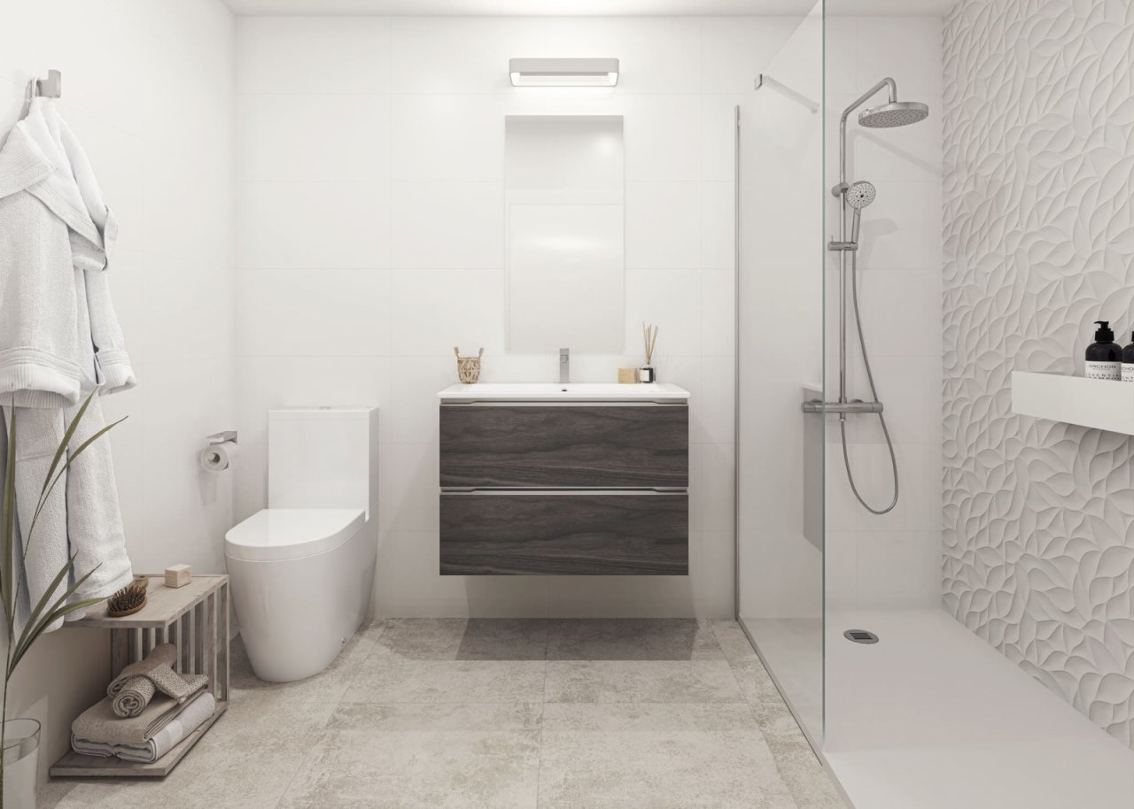 Jeder Bungalow verfügt über einen privaten Garten, ideal, um einen persönlichen grünen Raum zu schaffen oder um Momente im Freien zu genießen. Darüber hinaus bieten die Terrassen einen idealen Ort zum Entspannen und Bewundern der Umgebung. Die in den Wohnungen vorhandenen Solariums bieten zusätzlichen Raum für Freizeit, sodass Sie die Sonne in einer privaten Umgebung genießen können. Die Nähe zum Meer, nur 4 Kilometer entfernt, verleiht diesen Außenbereichen einen besonderen Reiz und bietet die Möglichkeit, den Strand in wenigen Minuten zu genießen.INNENBEREICHEDas Innere der Wohnungen ist so gestaltet, dass es Komfort und Funktionalität bietet. Jeder Bungalow verfügt über 2 Schlafzimmer und 2 Badezimmer, was einen geeigneten Raum für Familien oder Paare bietet. Die Innenmerkmale umfassen Keramikböden, die Haltbarkeit und eine moderne Ausführung bieten. Einbauschränke optimieren den Stauraum, während die Vorinstallation der Klimaanlage das ganze Jahr über ein angenehmes Klima gewährleistet. Die Einbeziehung von Geräten und einer Video-Gegensprechanlage fügt den Wohnungen ein zusätzliches Maß an Komfort und Sicherheit hinzu. Der Whirlpool ist ein luxuriöses Detail, das es ermöglicht, entspannende Momente in der Privatsphäre des Hauses zu genießen.GEMEINSCHAFTSBEREICHEDie Gemeinschaftsbereiche des Wohnkomplexes sind so gestaltet, dass sie das Zusammenleben und den Genuss der Bewohner fördern. Die Gartenanlagen bieten eine grüne und angenehme Umgebung, ideal für Spaziergänge oder für Kinder, um im Freien zu spielen. Der Gemeinschaftspool ist ein perfekter Treffpunkt, um sich in den wärmeren Monaten abzukühlen und mit den Nachbarn zu sozialisieren. Diese Gemeinschaftseinrichtungen sind darauf ausgelegt, das Wohnerlebnis im Komplex zu ergänzen, indem sie zusätzliche Räume für Freizeit und Entspannung bieten.PILAR DE LA HORADADAPilar de la Horadada an der Costa Blanca ist ein Küstenort mit feinen Sandstränden und einer ruhigen Atmosphäre. Seine Küstenlinie, wie z. B. Playa de Mil Palmeras, zieht Besucher auf der Suche nach Sonne und Meer an und macht ihn im Sommer zu einem beliebten Reiseziel. Der Tourismus in Pilar de la Horadada konzentriert sich auf die Strände und die Wasseraktivitäten, wie Schnorcheln und Tauchen. Die Nähe zu interessanten Gebieten wie dem Naturpark Salinas de San Pedro wertet das touristische Angebot zusätzlich auf. Der Lebensstil in Pilar de la Horadada ist entspannt und auf das Meer ausgerichtet. Die Einwohner genießen ein ruhiges Leben mit einem breiten gastronomischen Angebot, das auf frischem Fisch und mediterranen Gerichten basiert. Die Gemeinde schätzt die Nähe zum Meer und die lokalen Traditionen. Pilar de la Horadada bietet eine ruhige Küstenatmosphäre für alle, die ein entspanntes Leben am Mittelmeer an der Costa Blanca suchen.