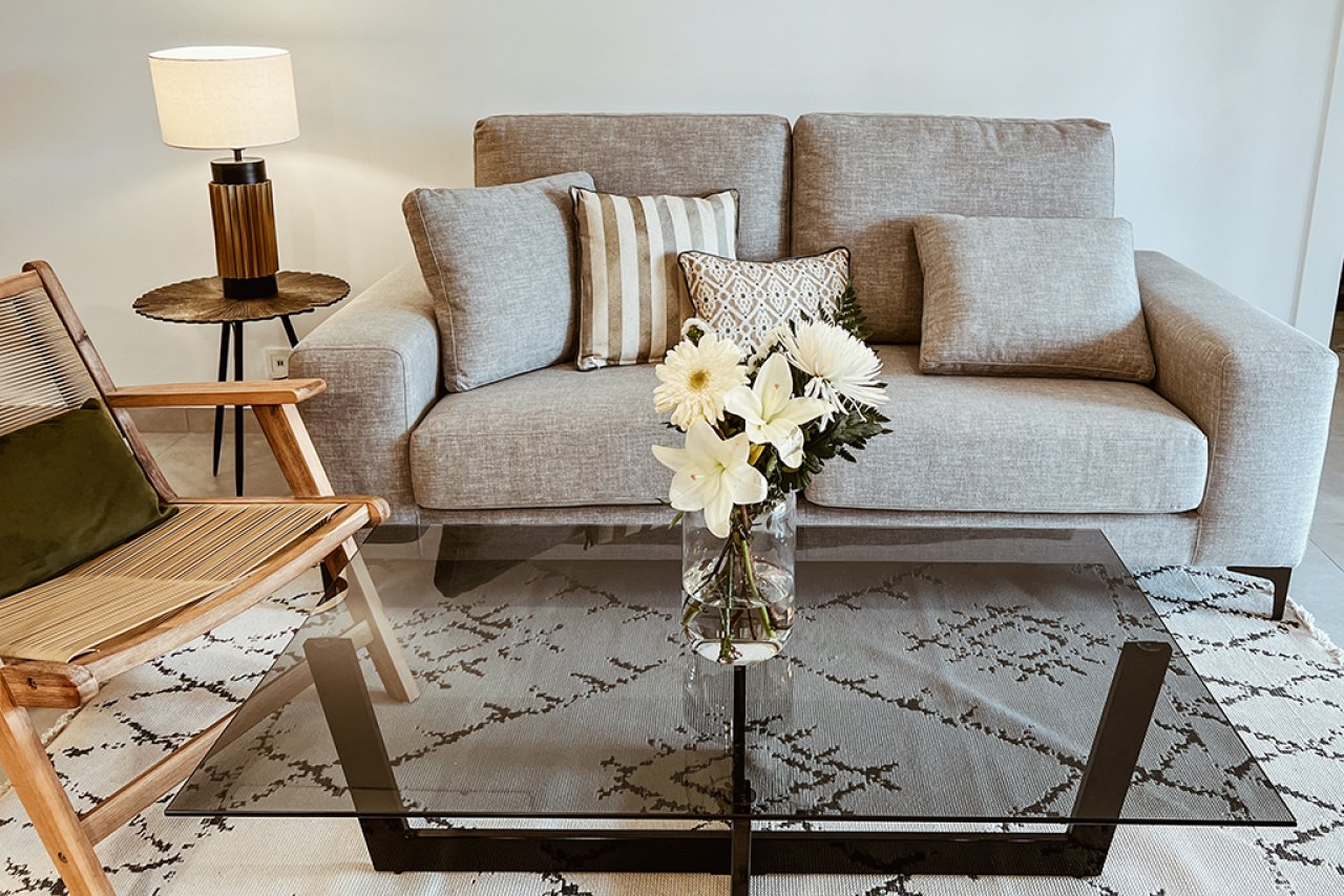 Jedes Apartment verfügt über eine private Terrasse, die perfekt ist, um im Freien zu entspannen und das mediterrane Klima zu genießen. Darüber hinaus bieten einige Apartments ein Solarium, das zusätzlichen Raum für Freizeit und Erholung bietet. Die Gemeinschaftsbereiche umfassen gepflegte Gärten, die ideal für ruhige Spaziergänge oder sicheres Spielen der Kinder sind.INNENBEREICHEDie Innenräume der Apartments sind mit Feinsteinzeugböden ausgestattet, die einen Hauch von Eleganz verleihen und pflegeleicht sind. Der Komfort wird durch die Installation von Klimaanlagen und modernen Geräten in jeder Wohnung gewährleistet. Einbauschränke bieten effizienten Stauraum und halten die Räume ordentlich und funktional. Die Aufteilung der Apartments ist so gestaltet, dass sie maximalen Komfort bietet, mit großzügigen Wohnbereichen und gut proportionierten Schlafzimmern.GEMEINSCHAFTSBEREICHEDie Wohnanlage verfügt über eine Vielzahl von Gemeinschaftseinrichtungen, die das Wohnerlebnis der Bewohner bereichern. Dazu gehören der Gemeinschaftspool, ideal zum Abkühlen in den heißeren Monaten, und die Padel- und Tennisplätze, die sportliche Möglichkeiten für jeden Geschmack bieten. Die Gartenanlagen bieten eine grüne und entspannende Umgebung, perfekt, um die Ruhe des Ortes zu genießen.