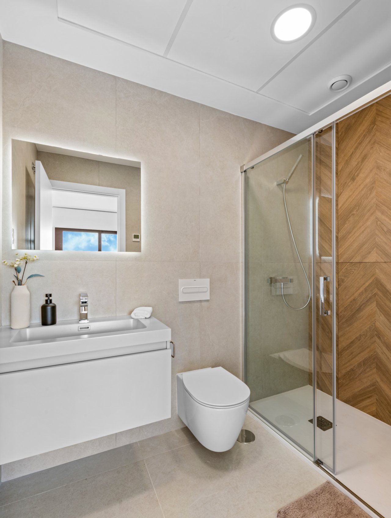 Die Terrassen bieten zusätzlichen Außenbereich, wo man im Freien speisen oder einfach nur in der Sonne entspannen kann. Das Solarium ist ein weiteres Highlight und bietet einen erhöhten Ort, um die Aussicht zu genießen und Freizeitmomente zu verbringen.INNENBEREICHEDas Innere dieser freistehenden Chalets ist darauf ausgelegt, Komfort und Funktionalität zu bieten. Mit drei Schlafzimmern und drei Bädern sind die Wohnungen so gestaltet, dass sie den Bedürfnissen von Familien oder Gruppen gerecht werden, die Raum und Privatsphäre suchen. Einbauschränke in den Schlafzimmern optimieren den Stauraum und sorgen für Ordnung und Ästhetik. Die Ausstattung der Küche mit Elektrogeräten erleichtert den Alltag und ermöglicht es, von Anfang an ein komplett ausgestattetes Zuhause zu genießen. Jedes Detail wurde berücksichtigt, um eine einladende und moderne Atmosphäre zu schaffen.PILAR DE LA HORADADAPilar de la Horadada an der Costa Blanca ist ein Küstenort mit feinen Sandstränden und einer ruhigen Atmosphäre. Seine Küstenlinie, wie z. B. Playa de Mil Palmeras, zieht Besucher auf der Suche nach Sonne und Meer an und macht ihn im Sommer zu einem beliebten Reiseziel. Der Tourismus in Pilar de la Horadada konzentriert sich auf die Strände und die Wasseraktivitäten, wie Schnorcheln und Tauchen. Die Nähe zu interessanten Gebieten wie dem Naturpark Salinas de San Pedro wertet das touristische Angebot zusätzlich auf. Der Lebensstil in Pilar de la Horadada ist entspannt und auf das Meer ausgerichtet. Die Einwohner genießen ein ruhiges Leben mit einem breiten gastronomischen Angebot, das auf frischem Fisch und mediterranen Gerichten basiert. Die Gemeinde schätzt die Nähe zum Meer und die lokalen Traditionen. Pilar de la Horadada bietet eine ruhige Küstenatmosphäre für alle, die ein entspanntes Leben am Mittelmeer an der Costa Blanca suchen.