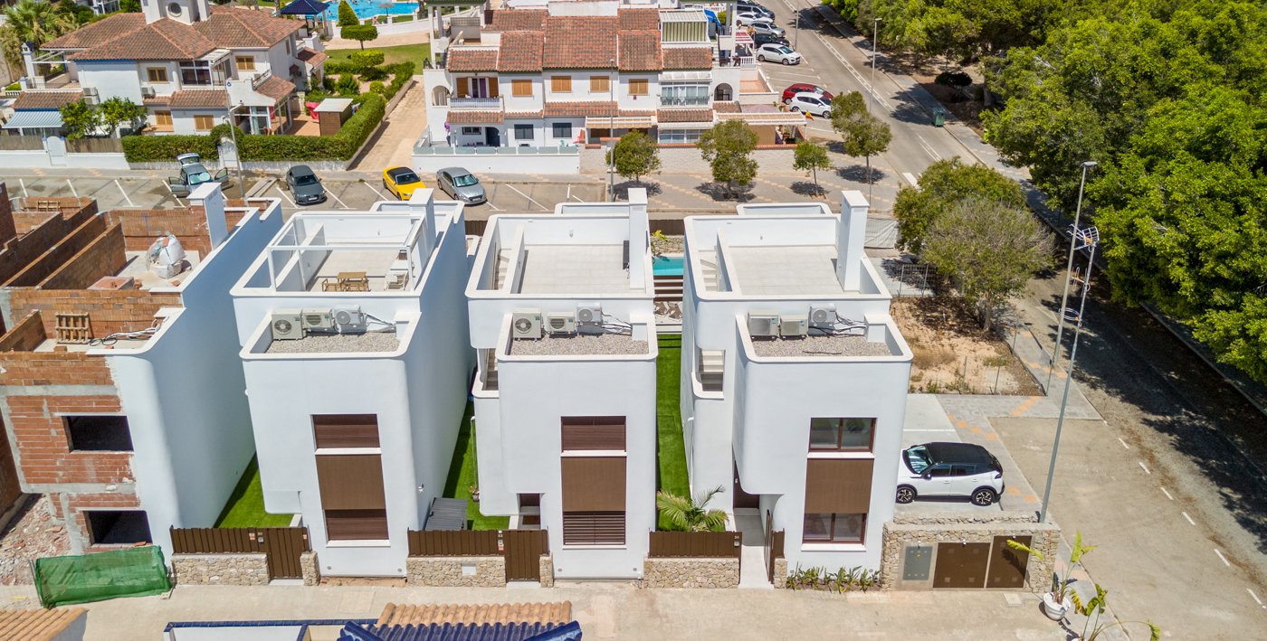AUSSENBEREICHEDie Außenbereiche dieser Immobilien wurden sorgfältig gestaltet, um das mediterrane Klima optimal zu nutzen. Jedes Chalet verfügt über einen privaten Garten, ideal, um eine persönliche Oase der Ruhe zu schaffen. Darüber hinaus bieten die Immobilien einen privaten Pool, ideal, um sich an heißen Sommertagen abzukühlen. Die Terrassen bieten zusätzlichen Außenbereich, wo man im Freien speisen oder einfach nur in der Sonne entspannen kann. Das Solarium ist ein weiteres Highlight und bietet einen erhöhten Ort, um die Aussicht zu genießen und Freizeitmomente zu verbringen.INNENBEREICHEDas Innere dieser freistehenden Chalets ist darauf ausgelegt, Komfort und Funktionalität zu bieten. Mit drei Schlafzimmern und drei Bädern sind die Wohnungen so gestaltet, dass sie den Bedürfnissen von Familien oder Gruppen gerecht werden, die Raum und Privatsphäre suchen. Einbauschränke in den Schlafzimmern optimieren den Stauraum und sorgen für Ordnung und Ästhetik. Die Ausstattung der Küche mit Elektrogeräten erleichtert den Alltag und ermöglicht es, von Anfang an ein komplett ausgestattetes Zuhause zu genießen. Jedes Detail wurde berücksichtigt, um eine einladende und moderne Atmosphäre zu schaffen.PILAR DE LA HORADADAPilar de la Horadada an der Costa Blanca ist ein Küstenort mit feinen Sandstränden und einer ruhigen Atmosphäre. Seine Küstenlinie, wie z. B. Playa de Mil Palmeras, zieht Besucher auf der Suche nach Sonne und Meer an und macht ihn im Sommer zu einem beliebten Reiseziel. Der Tourismus in Pilar de la Horadada konzentriert sich auf die Strände und die Wasseraktivitäten, wie Schnorcheln und Tauchen. Die Nähe zu interessanten Gebieten wie dem Naturpark Salinas de San Pedro wertet das touristische Angebot zusätzlich auf. Der Lebensstil in Pilar de la Horadada ist entspannt und auf das Meer ausgerichtet. Die Einwohner genießen ein ruhiges Leben mit einem breiten gastronomischen Angebot, das auf frischem Fisch und mediterranen Gerichten basiert. Die Gemeinde schätzt die Nähe zum Meer und die lokalen Traditionen. Pilar de la Horadada bietet eine ruhige Küstenatmosphäre für alle, die ein entspanntes Leben am Mittelmeer an der Costa Blanca suchen.