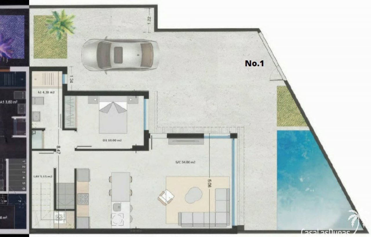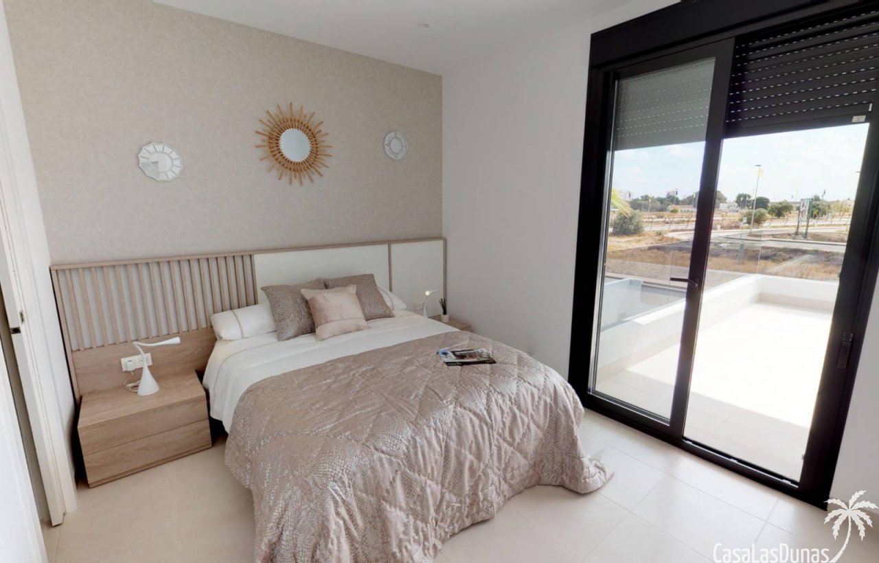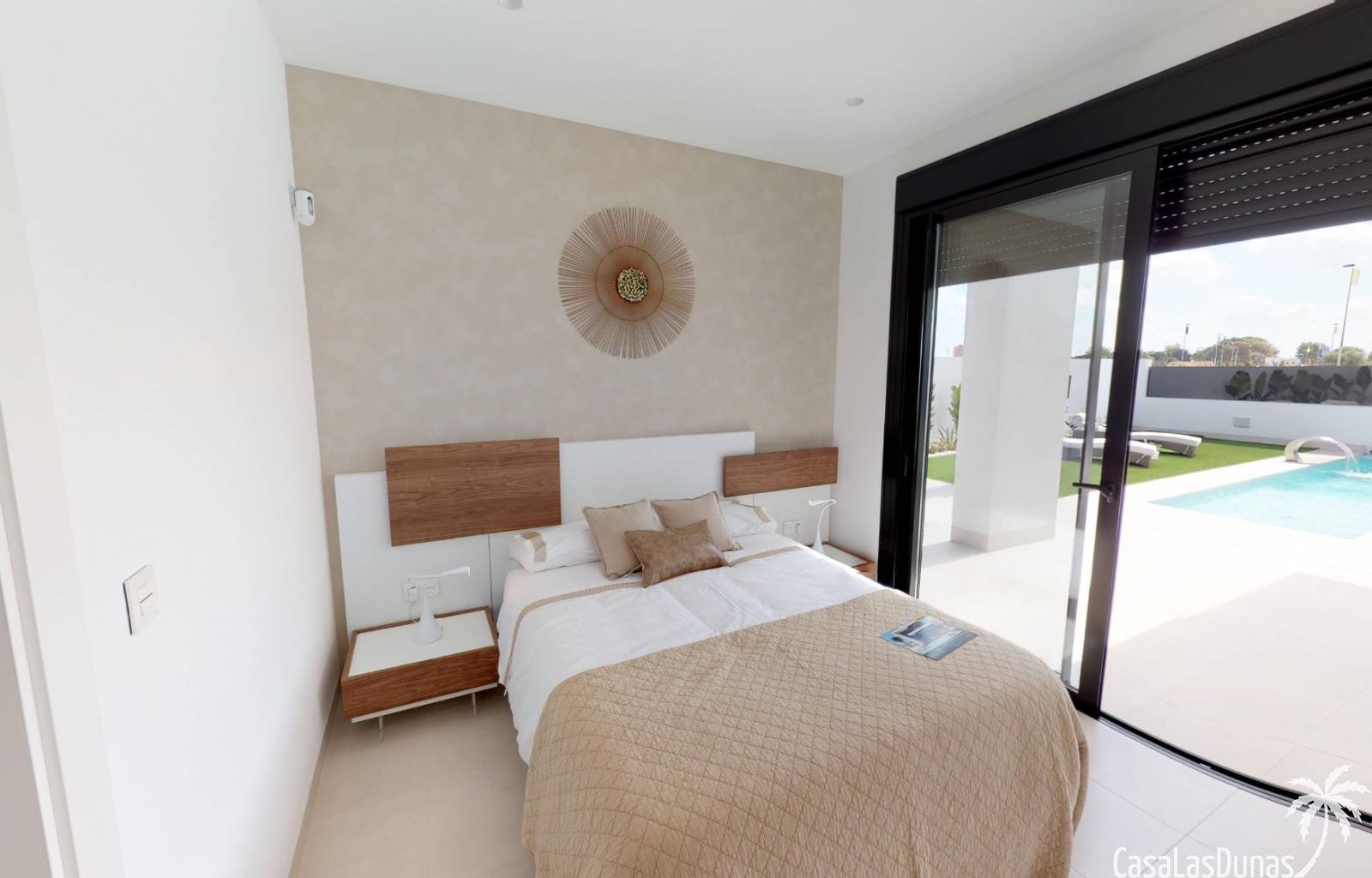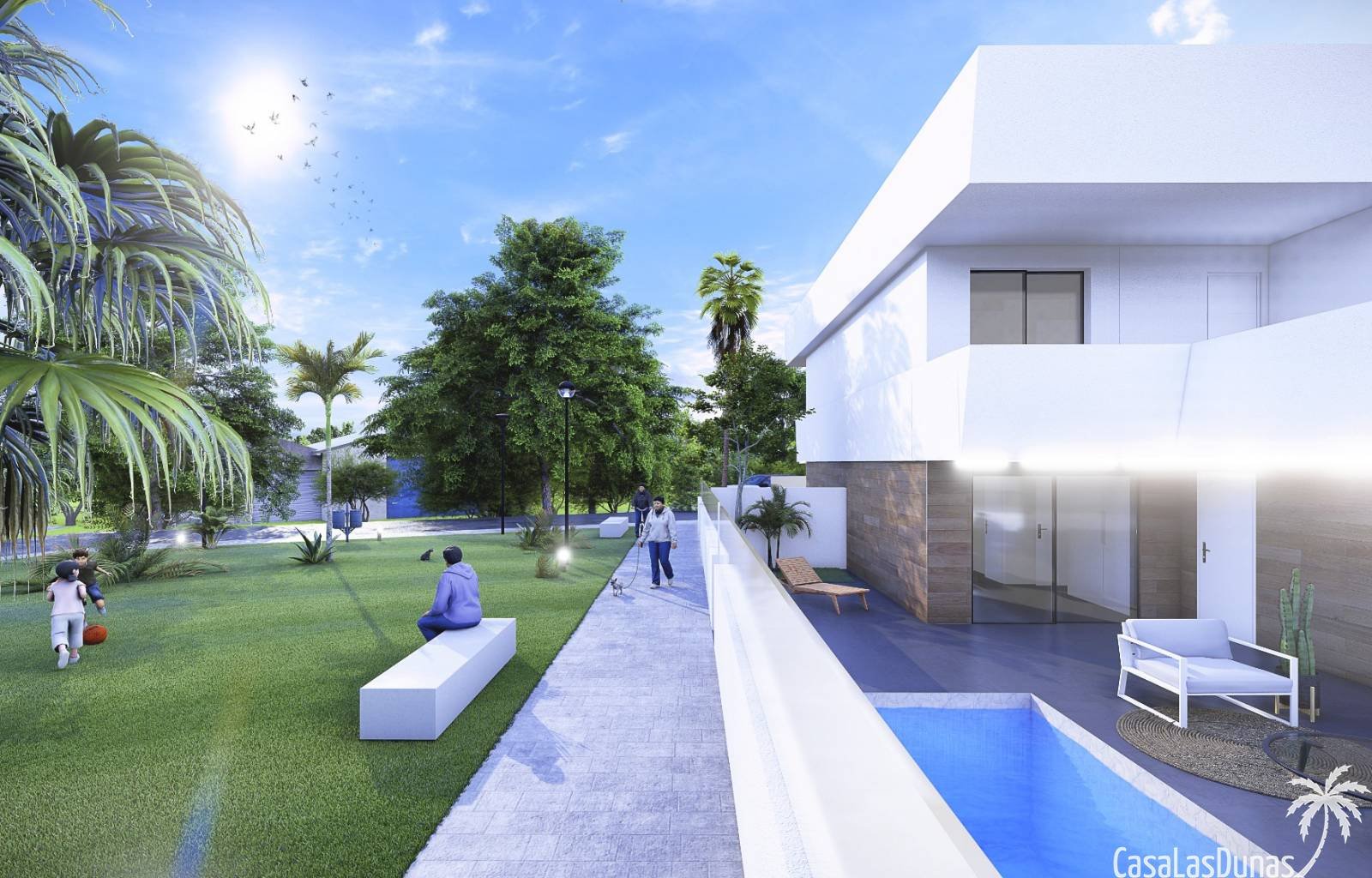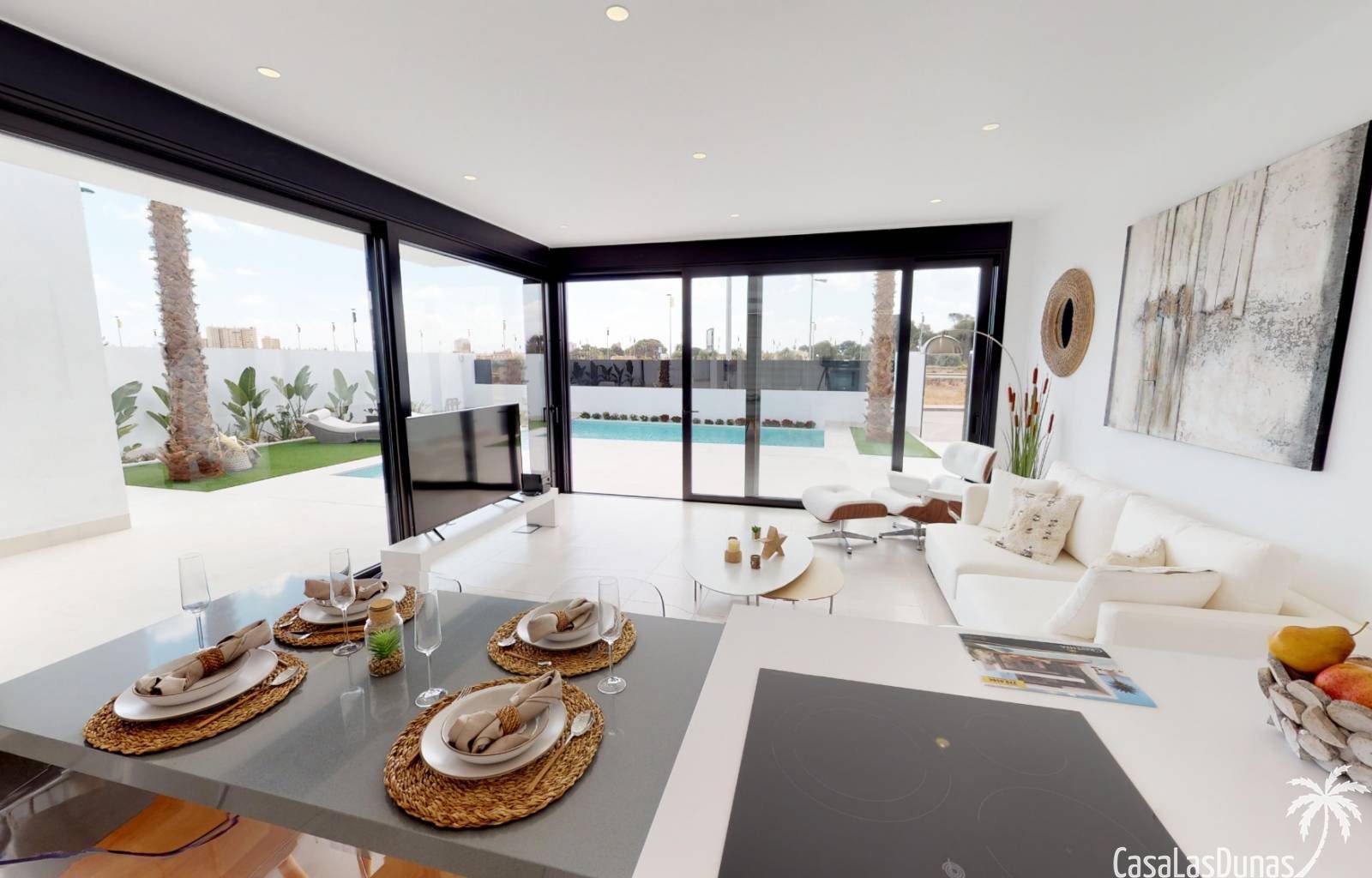 Diese Doppelhaushälften liegen nur 10 Gehminuten vom Strand Mar Menor entfernt. Das Haus ist innen sehr geräumig und verfügt über große Terrassen. Es stehen noch 2 Unterkünfte zur Verfügung, inklusive Haushaltsgeräten (Backofen, Herd, Dunstabzugshaube, Geschirrspüler und Mikrowelle), Innenbeleuchtung (LED), Außenbeleuchtung (LED), einem privaten dreieckigen Swimmingpool von ca. 12 m² und vorinstallierter Klimaanlage . . Auf den Fotos sehen Sie das Musterhaus, das sich nicht am selben Standort befindet wie das derzeit zum Verkauf stehende Haus. Die Innenausstattung der Villen wird jedoch identisch sein, mit Ausnahme der Möbel. Das Grundstück hat eine andere Form, wie Sie auf der Karte sehen können. Die Lieferung ist für September 2023 geplant, also handeln Sie schnell! Bitte kontaktieren Sie uns für weitere Informationen oder um Ihren Besuch zu vereinbaren.