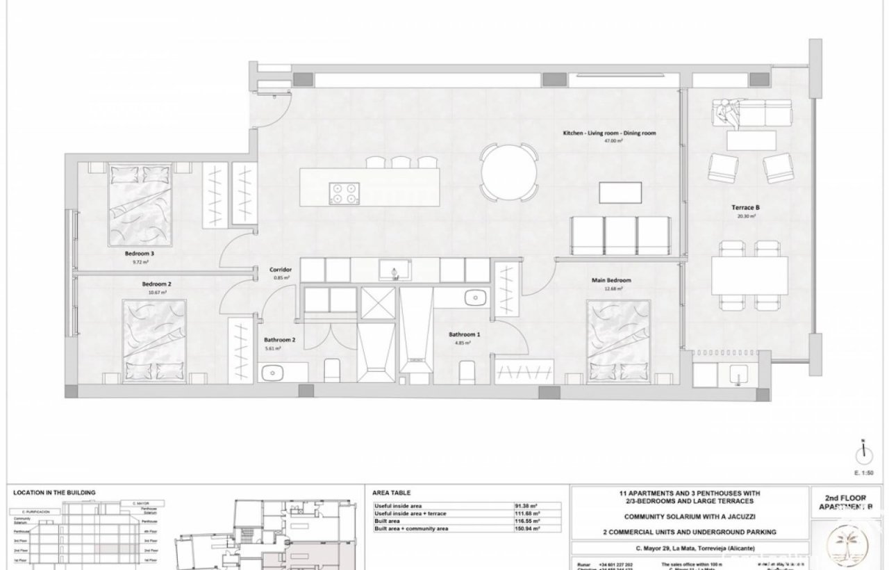 Diese Luxusapartments liegen nur 50 Meter vom Strand La Mata entfernt und bieten direkten Meerblick. Das Gebäude verfügt über 3 Penthäuser, eine Außenküche und einen Whirlpool sowie 11 Unterkünfte mit individuellen Terrassen. Jede Wohnung verfügt über zwei oder drei Schlafzimmer, ein oder zwei Badezimmer und eine Dachterrasse mit Whirlpool, wo Sie den ganzen Tag in Spanien die Sonne genießen können. Darüber hinaus sind alle Wohnungen mit Einbauschränken, Hausautomation, Innen- und Außenbeleuchtung, kompletter Klimaanlage, komplett ausgestatteter Küche mit allen Bosch-Geräten, Fußbodenheizung im Wohnzimmer und Badezimmer sowie Innen- und Außenheizung ausgestattet. In La Mata, wo Sie alle Dienstleistungen wie Geschäfte, Apotheken, Supermärkte, Bars und Restaurants finden, liegt dieser neue Komplex nur 50 Meter vom Strand entfernt. Der 4,5 km entfernte Habaneras-Komplex bietet eine große Auswahl an Attraktionen, darunter ein Kino, Bowling und eine Spielhalle.…