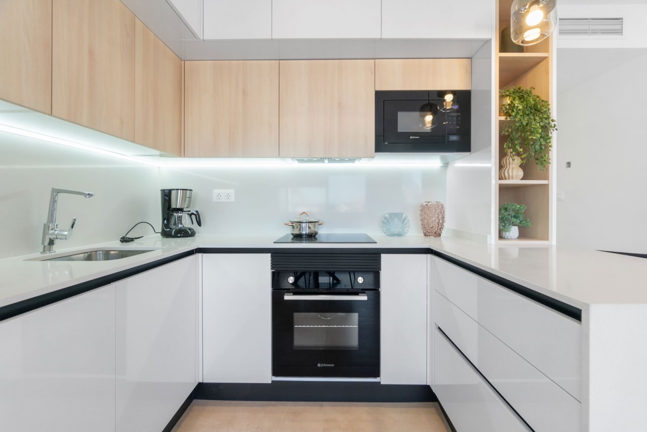 Das Innere dieser Wohnungen ist so gestaltet, dass es Komfort und Funktionalität bietet. Die Keramikböden verleihen einen modernen Touch und sind pflegeleicht. Elektrische Rollläden und enthaltene Geräte erleichtern den Alltag, während Einbauschränke effizienten Stauraum bieten. Die Vorinstallation der Klimaanlage sorgt dafür, dass das Innenklima immer angenehm ist, unabhängig von der Jahreszeit. Darüber hinaus verfügen einige Wohnungen über einen Jacuzzi, der dem Zuhause einen Hauch von Luxus und Entspannung verleiht.