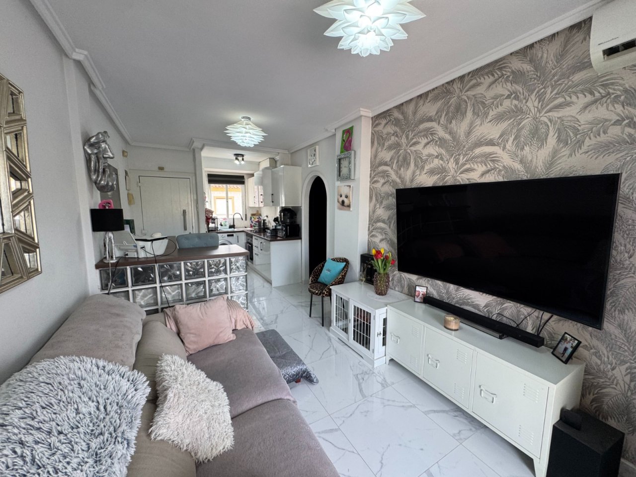 The apartment is fully furnished with high-quality furniture, fixtures, and fittings, complemented by elegant white porcelain flooring throughout.The smaller bedroom is generously sized and currently accommodates a king-size bed, while also being well-suited to a standard double. It features a large window allowing ample natural light. The stylish bathroom includes a walk-in shower and a modern vanity unit. The larger bedroom includes fitted wardrobes is also south-facing, and offers views over the communal pool area, and .A standout feature of this property is the private rooftop solarium, fully equipped with a bar and sunbathing area—perfect for enjoying beautiful Mediterranean summer evenings.Additional benefits include a designated private parking space. This apartment is ideal as a permanent residence, a holiday home, or a lock-up-and-leave investment with excellent rental potential.The location is exceptional, with La Fuente Commercial Centre within walking distance, offering a wide range of bars, restaurants, pharmacies, and supermarkets. Three renowned golf courses are also located nearby.A truly beautiful apartment that must be seen to be fully appreciated.