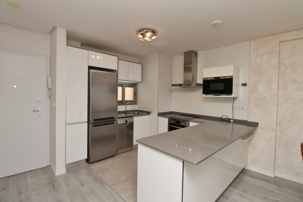 Dieses beeindruckende, ostorientierte Penthouse befindet sich im begehrten Wohnkomplex Altos del Mediterráneo in Los Dolses und bietet herrliche Ausblicke auf das Mittelmeer und den Mar Menor. Gelegen im Block 3 mit Aufzug, überzeugt es durch modernes Design und hervorragende Außenbereiche. Das Innere besteht aus einem hellen Wohn-/Essbereich mit moderner offener Küche, zwei Doppelschlafzimmern mit Einbauschränken sowie zwei zeitgemäßen Badezimmern, eines davon en-suite. Sowohl das Wohnzimmer als auch das Hauptschlafzimmer führen auf einen sonnigen ostorientierten Balkon mit Glasvorhängen für die Nutzung das ganze Jahr über. Vom Balkon führt eine Treppe zur beeindruckenden privaten Dachterrasse mit Panoramablick auf das Meer, den Mar Menor und La Manga. Die Dachterrasse verfügt zudem über einen Abstellraum. Die Immobilie bietet einen Parkplatz innerhalb der geschlossenen Wohnanlage sowie Zugang zu hervorragenden Gemeinschaftseinrichtungen: Außenpool, beheiztes Hallenbad, Fitnessstudio, Sauna und Grünflächen. Nur wenige Schritte von Supermarkt, Geschäften, Bars, Restaurants und Bushaltestelle entfernt, und fußläufig erreichbar zu Zenia Boulevard, Villamartin Plaza und Villamartin Golf. Ideal als Dauerwohnsitz, Feriendomizil oder Investition.