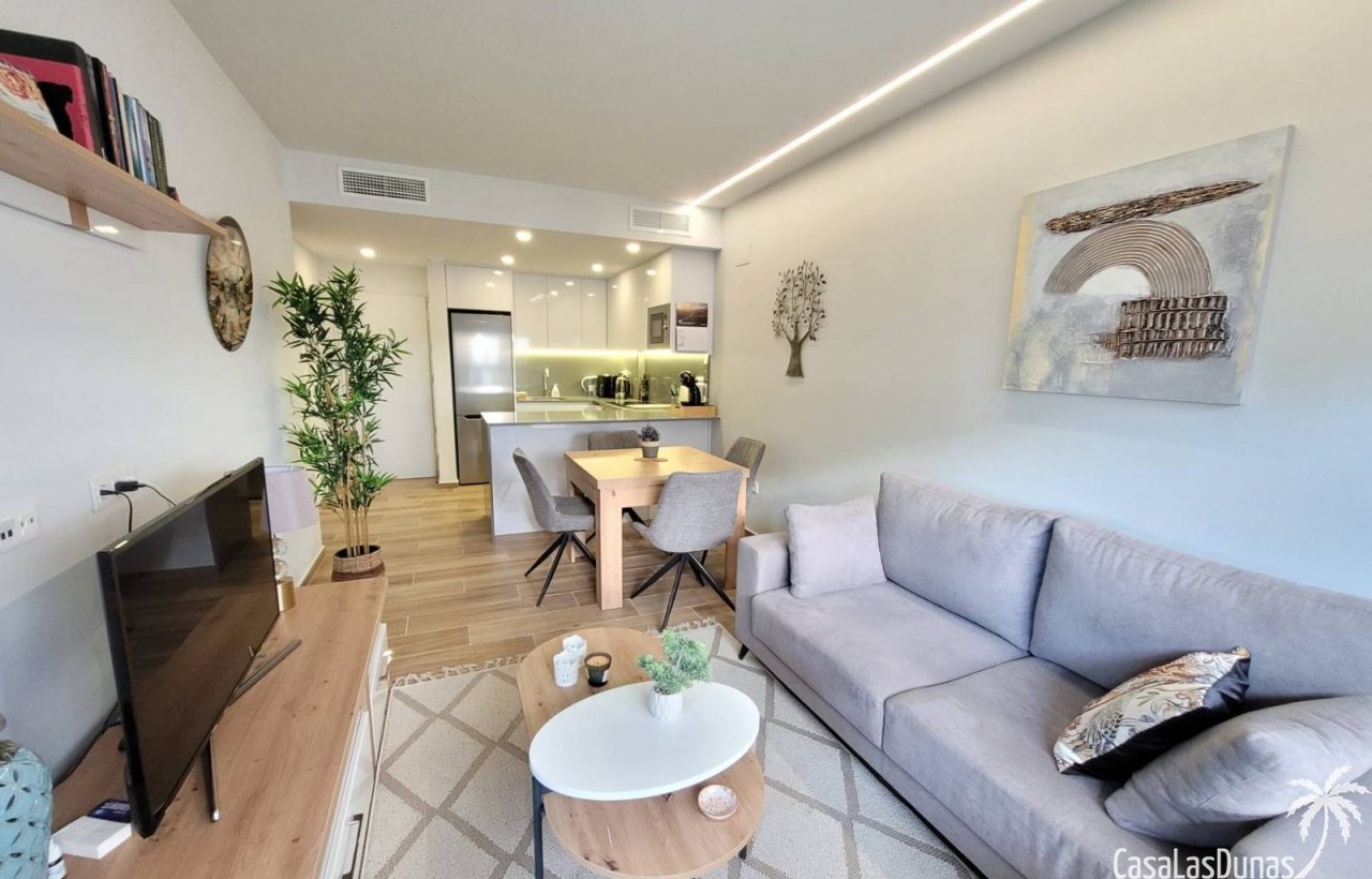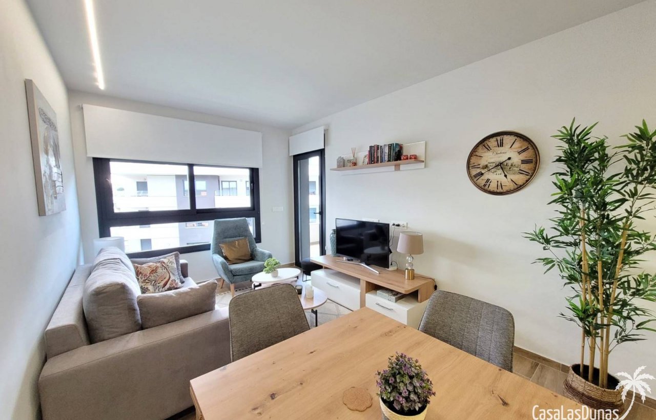 Die Anlage verfügt über einen Gemeinschaftsgarten und einen Aufzug, sodass die Wohnung im zweiten Stock für alle Bewohner bequem erreichbar ist. Nur 5 km vom Strand entfernt, ist diese Unterkunft ein idealer Ausgangspunkt, um die Umgebung zu erkunden. Dank der Nähe zu zahlreichen Geschäften und Dienstleistungen ist alles Notwendige für Ihren Bedarf schnell und einfach zu erreichen. Die Wohnung liegt nur wenige hundert Meter von einem großen, wunderschönen Naturschutzgebiet entfernt, das sich perfekt für malerische Spaziergänge eignet. Ein hervorragender Golfplatz befindet sich ebenfalls in der Nähe in Villamartin, und das große Einkaufszentrum Zenia Boulevard ist nur 5 Fahrminuten entfernt.