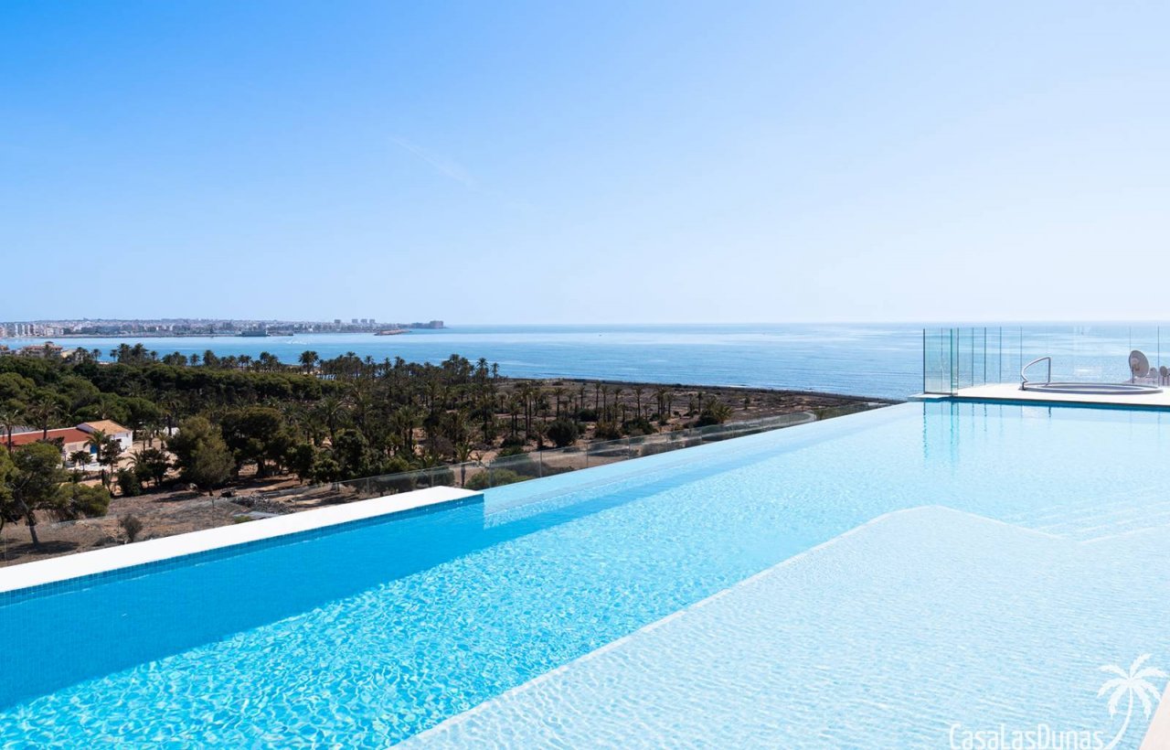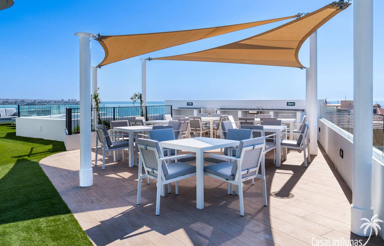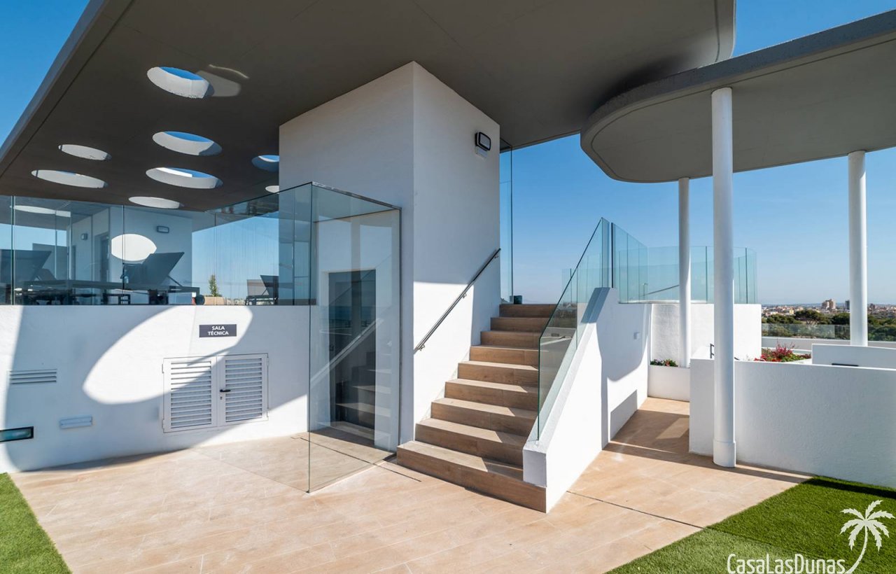 Das Dach des Komplexes bietet eine stilvolle, gemeinschaftliche Dachterrasse, auf der Entspannung großgeschrieben wird. Hier erwarten Sie ein Infinity-Pool mit Wasserbetten, ein Whirlpool und eine gemütliche Chill-out-Zone. Der 360°-Panoramablick garantiert atemberaubende Sonnenauf- und -untergänge. Die Gemeinschaftsbereiche sind modern und gepflegt, das Gebäude verfügt über einen Aufzug, und die Lage in Strandnähe und angrenzend an ein Naturschutzgebiet macht dieses Projekt noch attraktiver.