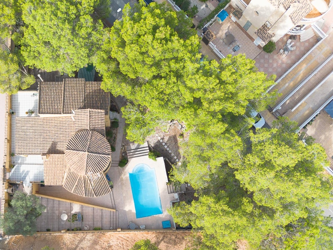 We are delighted to introduce you to a 6-bedroom classic Spanish villa located in the picturesque Las Filipinas neighbourhood of Villamartin. Built in the 1990s, this charming residence boasts 180 square meters of living space across three levels, featuring 3 bathrooms and an additional guest toilet for your convenience. Generously sized interiors include a modern open-plan kitchen, a large dining area, and a spacious lounge that invites natural light throughout. Nestled on an 800 square meter corner plot, the villa offers ample off-road parking for several cars, a private pool, and multiple outdoor seating areas to enjoy the Mediterranean climate. This elegant home is surrounded by up-and-coming neighbourhoods and is conveniently close to various amenities, including bars, restaurants, and a reliable bus service. Just a 5-minute drive away, you’ll find a variety of supermarkets and beautiful beaches within a 15-minute drive. Additionally, this villa is situated in the heart of a thriving golf area with four 18-hole golf courses nearby - Villamartin, Las Ramblas, Campoamor, and Las Colinas, all while enjoying over 320 sunny days each year. This property is perfect for those seeking both comfort and a vibrant lifestyle.