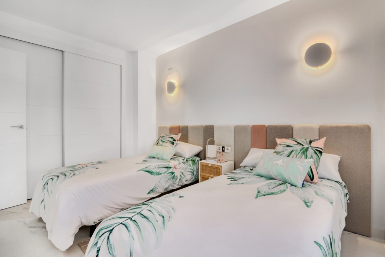 Punta Prima, located just 5 km from Torrevieja, is known for its excellent infrastructure, healthcare services, and year-round amenities. It’s also well connected to Alicante Airport. For golf enthusiasts, Villamartín, Campoamor, Las Ramblas, Las Colinas, and Lo Romero golf courses are within a 10 km radius, as well as popular shopping centers like La Zenia and Habaneras.