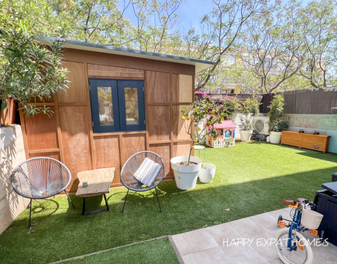 Am Ende Ihres privaten Gartens steht ein charmantes, freistehendes Gartenhaus mit 12 m². Dieser vielseitige Raum ist die perfekte Lösung für ein ruhiges Home Office (ideal für Remote-Arbeit), ein kreatives Studio oder ein eigenes Spielzimmer für Kinder.