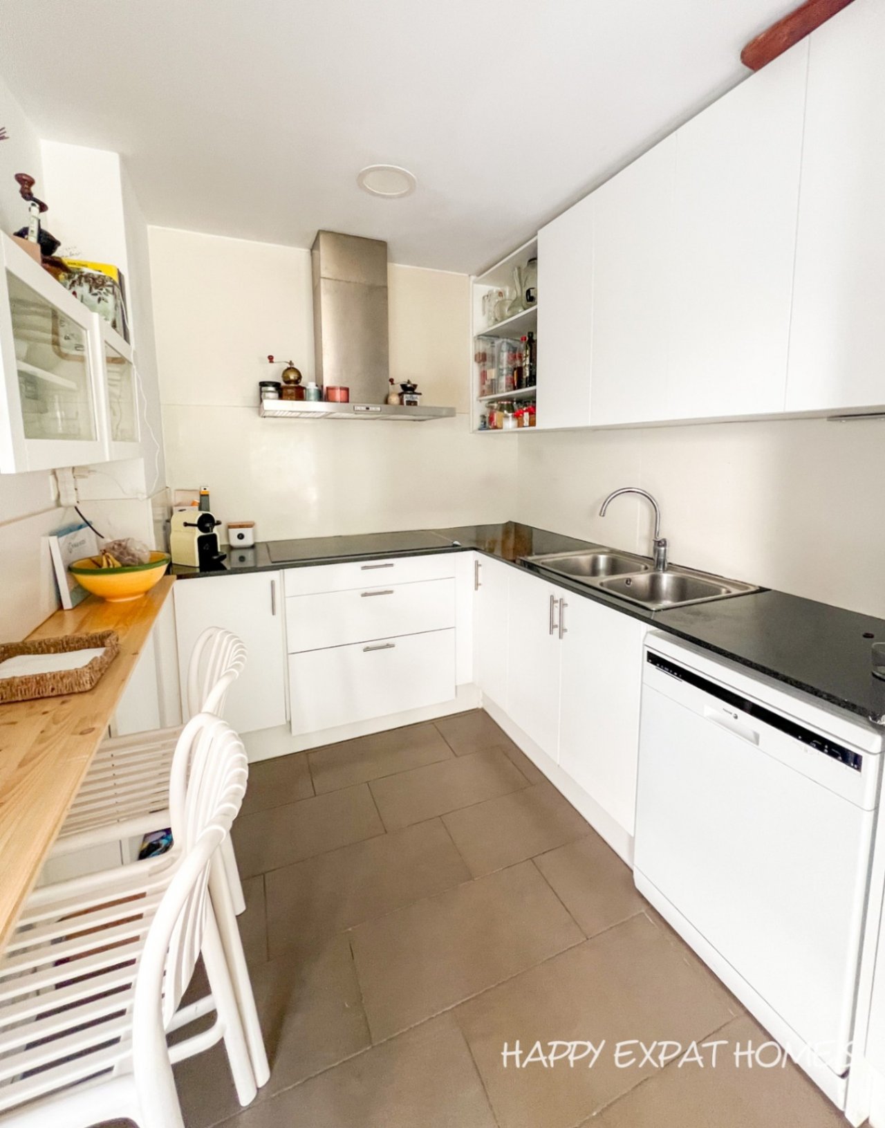 Der soziale Kern: Die voll ausgestattete Küche geht nahtlos in den Wohnbereich über.